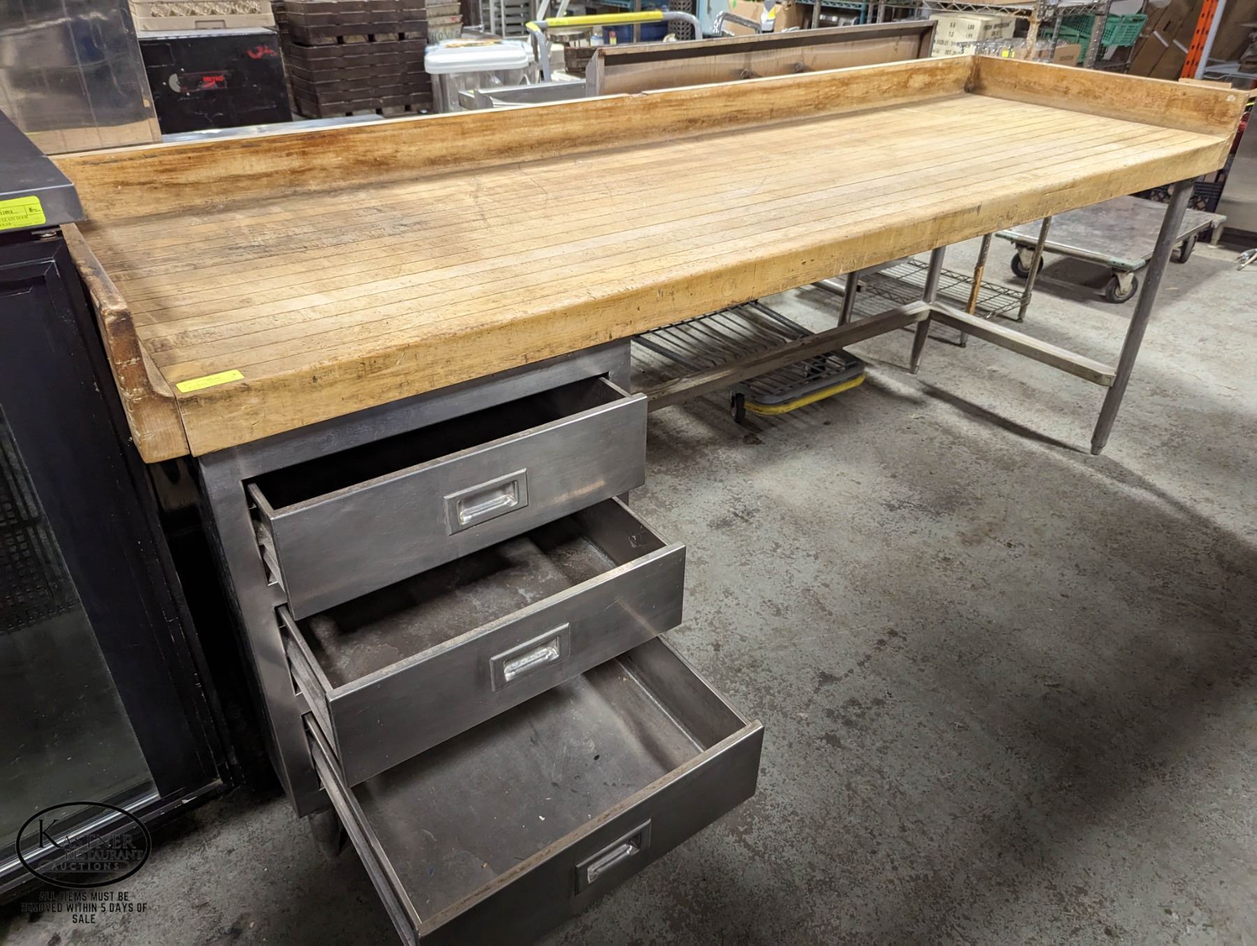 STEEL DRAWERS & FRAME. 96" X 30" X 35" **ALL ITEMS MUST BE REMOVED BY 5PM MONDAY, AUGUST 28TH, 2023. ALL REMAINING ITEMS WILL BE SUBJECT TO A $6.00 PER DAY STORAGE CHARGE. ANY ITEMS REMAINING AFTER MONDAY, SEPTEMBER 11TH, 2023, 2023 WILL BE CONSIDERED FORFEITED. NO REFUNDS WILL BE ISSUED FOR FORFEITED ITEMS.** TO SCHEDULE A PICK UP APPOINTMENT CLICK HERE