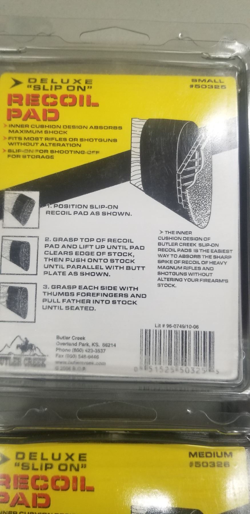 BUTLER CREEK SLIP ON RECOIL PADS 2 SMALL, 2 MEDIUM, 1 LARGE