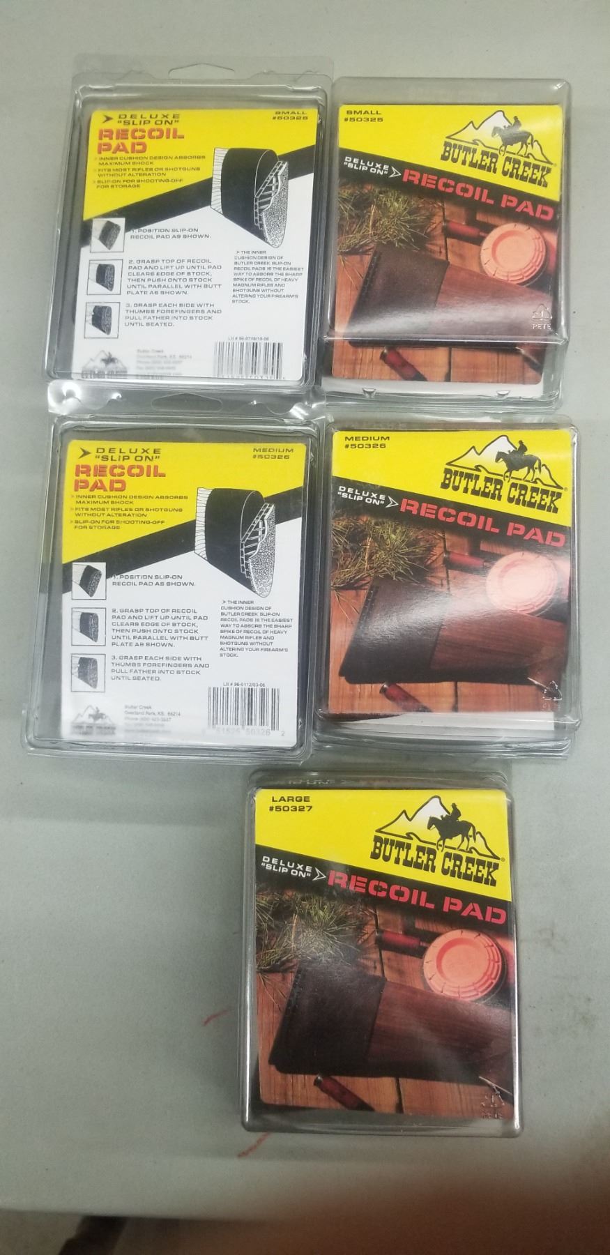 BUTLER CREEK SLIP ON RECOIL PADS 2 SMALL, 2 MEDIUM, 1 LARGE