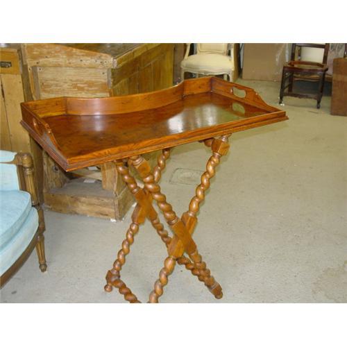 BUTLERS STAND HAS A BURLED WALNUT TRAY WITH AN OAK GALLEY AND A BARLEY TWIST STAND, BOTH PICES IN EXCELLENT CONDITION