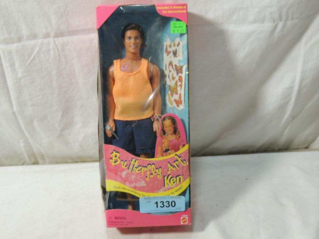 BUTTERFLY ART KEN COOL DECORATIONS FOR KEN AND YOU TO WEAR. IN ORGINAL BOX. GOOD CONDITION. HIGHLY COLLECTIBLE. BARBIE DOLL. AS SHOWN SEE PHOTO FOR MORE DETAILS.