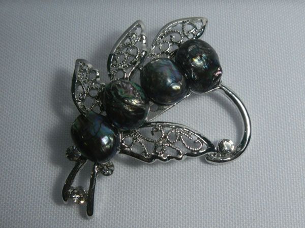 BUTTERFLY BLACK KISHI PEARL BROOCH AUTHENTIC PHILIPPINE **|**|** BUTTERFLY BLACK KISHI PEARL BROOCH AUTHENTIC PHILIPPINE PEARL METAL SILVER ; MSRP: $150