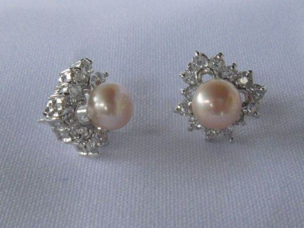 BUTTERFLY CZ PEACH PEARL SILVER EARRINGS***METAL: SILVE **|**|** BUTTERFLY CZ PEACH PEARL SILVER EARRINGS***METAL: SILVER; AUTHENTIC PHILIPPINE PEARL ; MSRP: $200