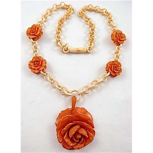 <tr><td>Title:BUTTERSCOTCH Bakelite ROSE & Celluloid NECKLACE</td></tr>