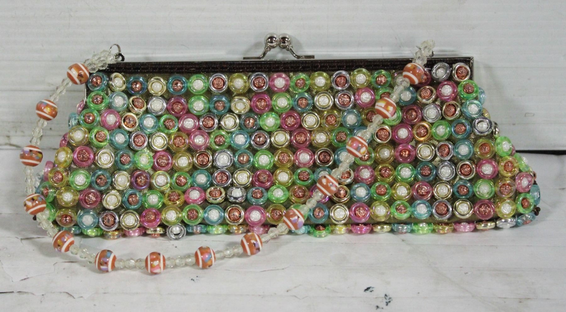 BUTTON BEADED HANDBAG CLUTCH PURSE