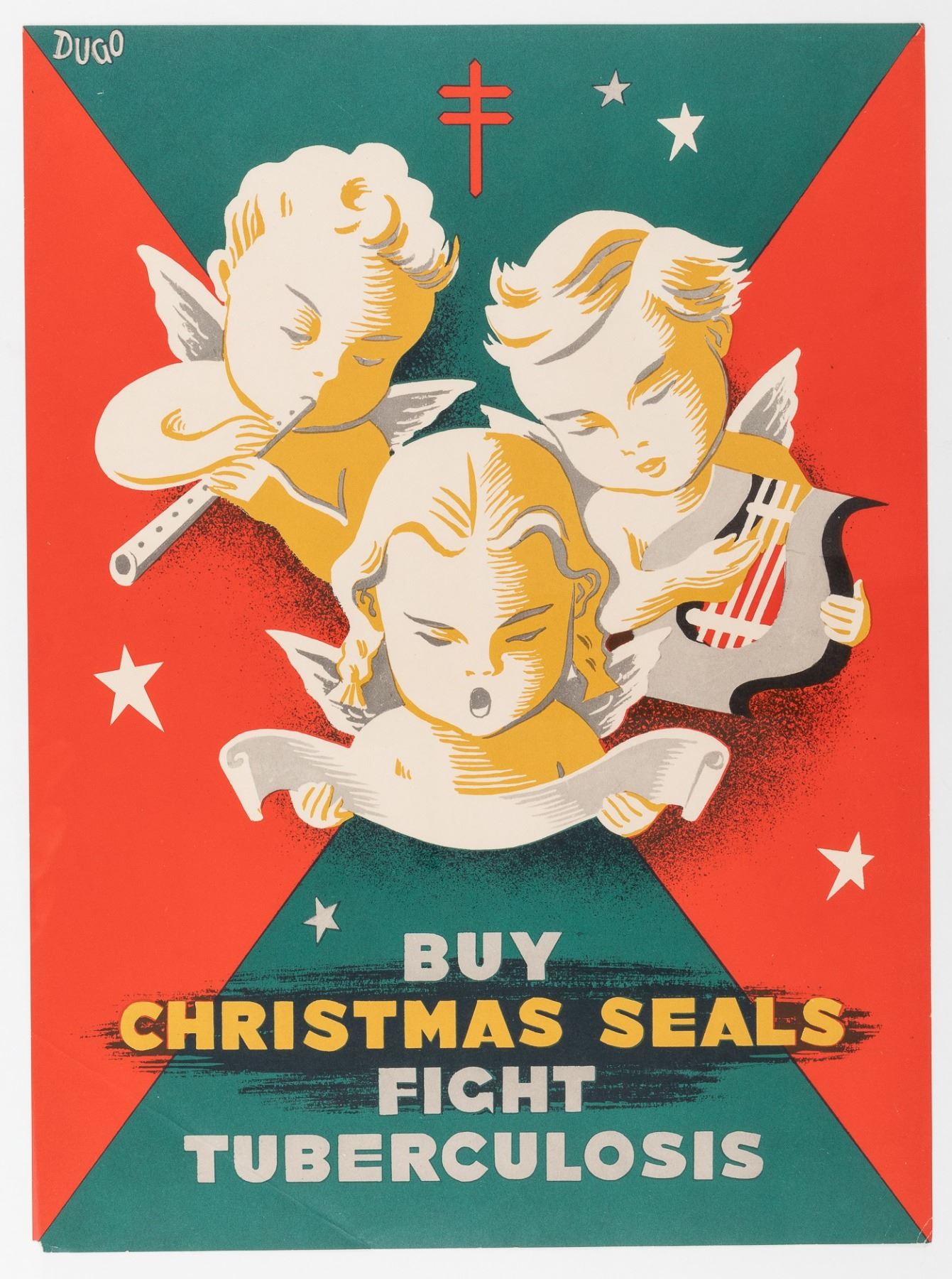 American poster, 'Buy Christmas Seals Fight Tuberculosis', artwork by Andre Dugo, (1895-1957), 14.75 x 11 inches. Minor loss at bottom left corner and minor creases.