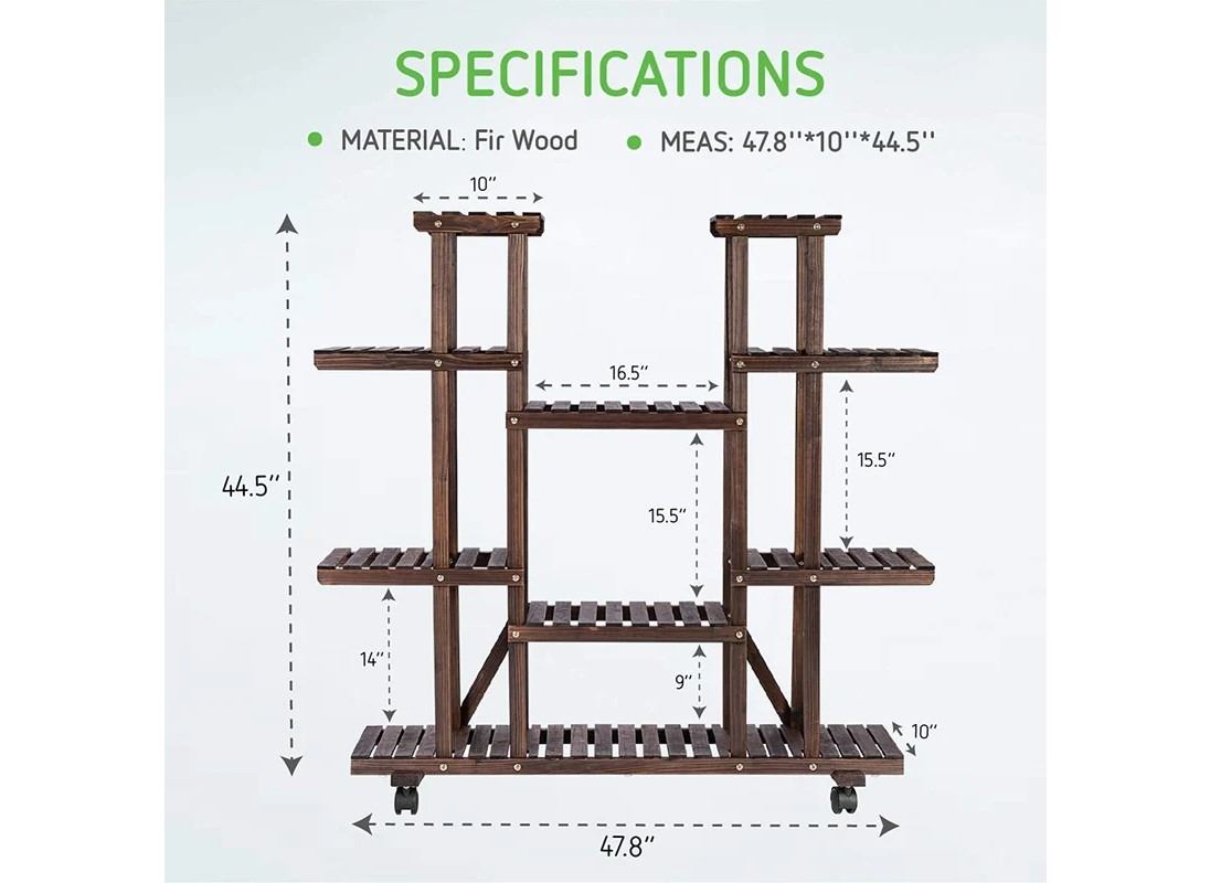 SOLID WOOD PLANT STAND WITH 17 SECTIONS FOR POTS, BROWN, ALL PARTS AND MANUAL CONFIRMED, IN ORIGINAL BOX, AMZ SES
