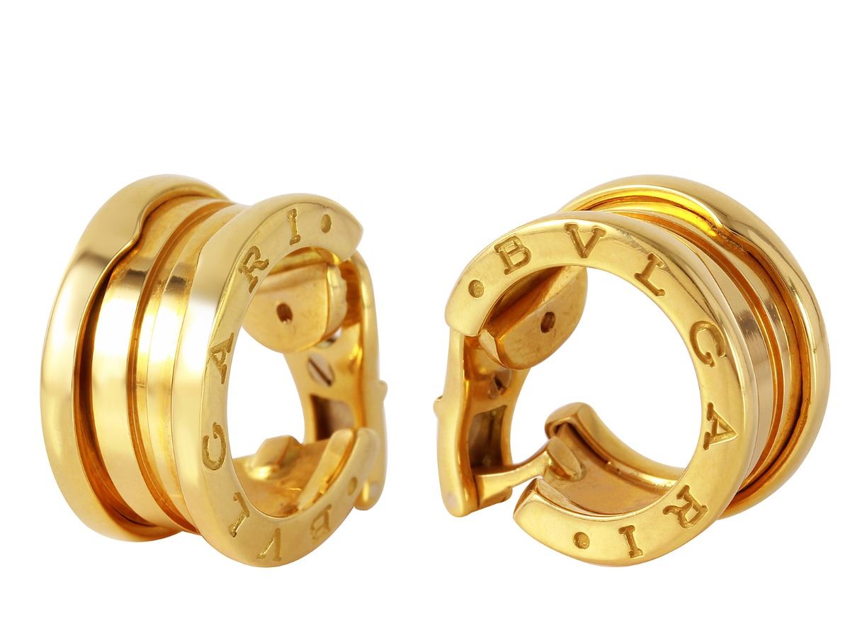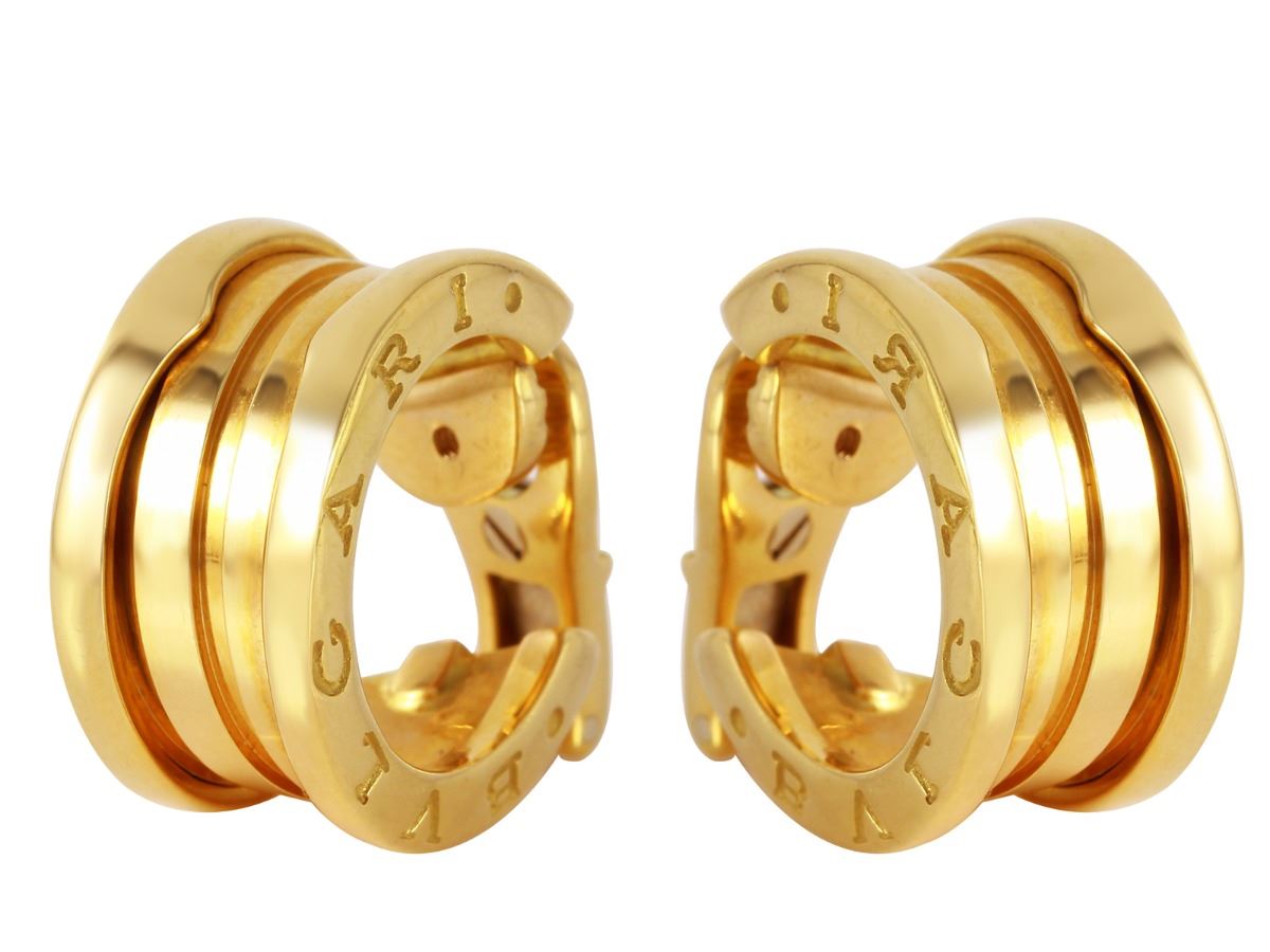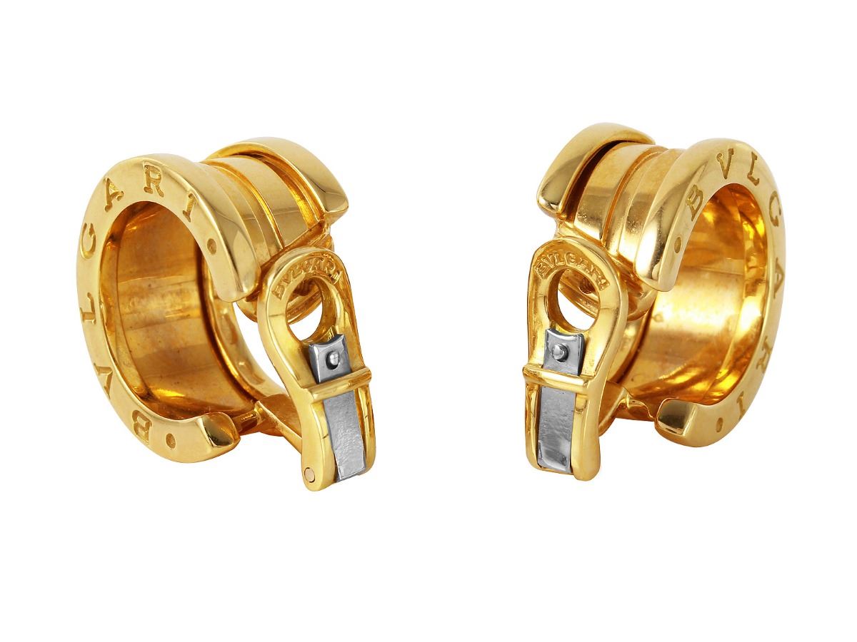 One pair electronically tested 18KT yellow gold ladies cast BVLGARI Designer hoop earrings with Omega clip backs with a bright polish finish. Measuerments: 16mm x 8mm. Trademark is BVLGARI. Identified with markings of "750 MADE IN ITALY". Condition is very good. Total Weight of Hoop Earrings 15.26gm. WE SHIP WORLDWIDE!