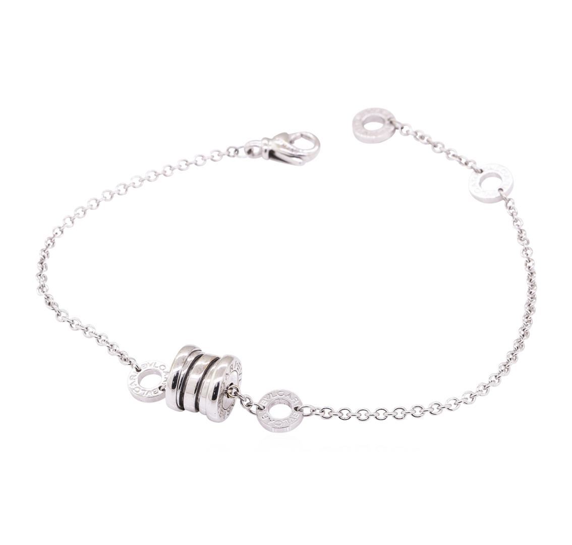 One BVLGARI B.Zero1 Bracelet featuring: 18KT white gold weighing 6.5 grams. The bracelet is adjustable and can be worn between seven and seven and a half inches in length.