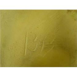 Bybee Pottery yellow glaze buttermilk pitcher.  Marked BB on underside.  Louisville, KY.  Dimensions are 5-7/8" x 8" wide.  Condition:  Very Good