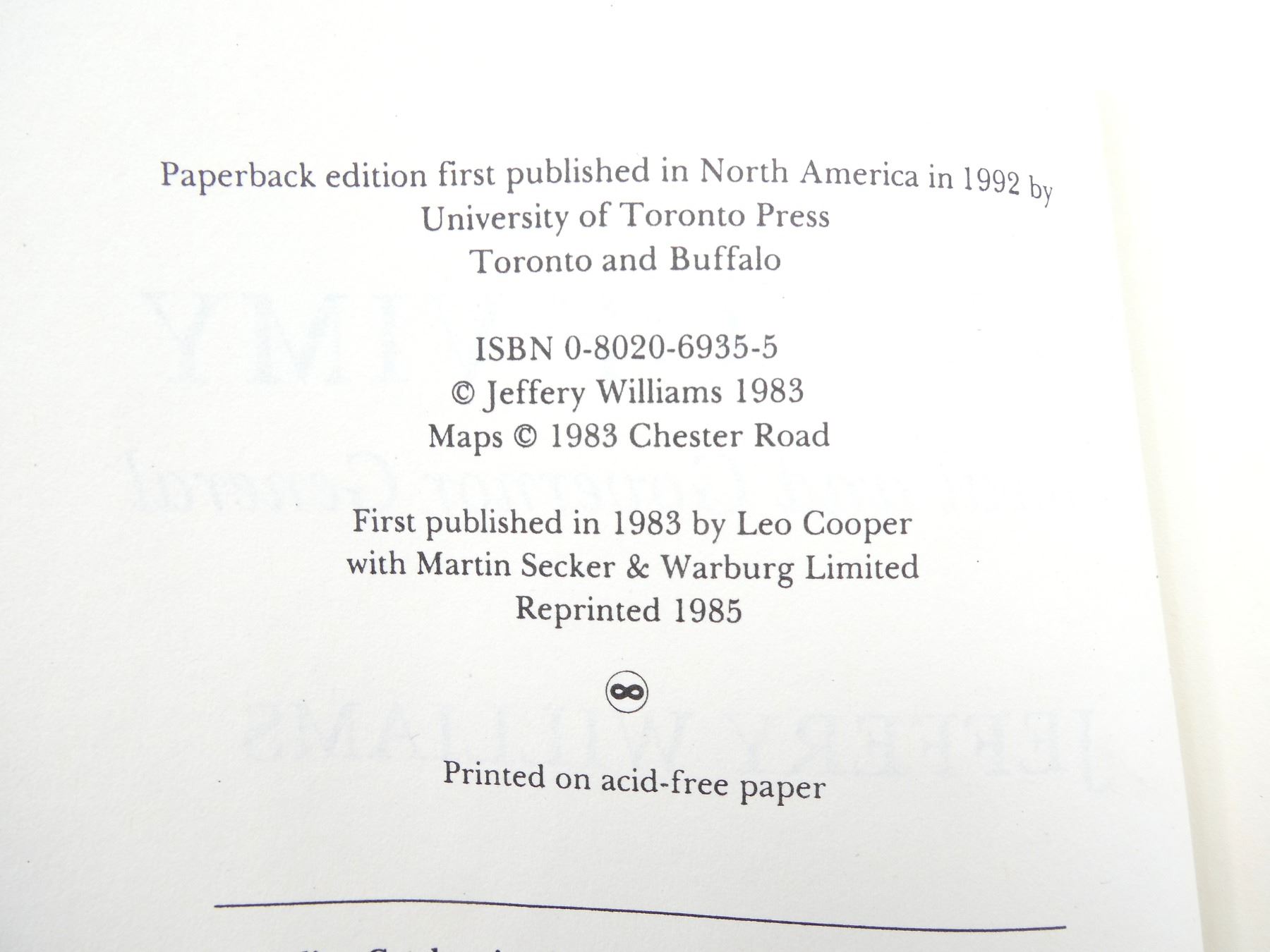(1) BY JEFFERY WILLIAMS, SOFT COVER, ISBN: 0-8020-6935-5. SEE PHOTOS.