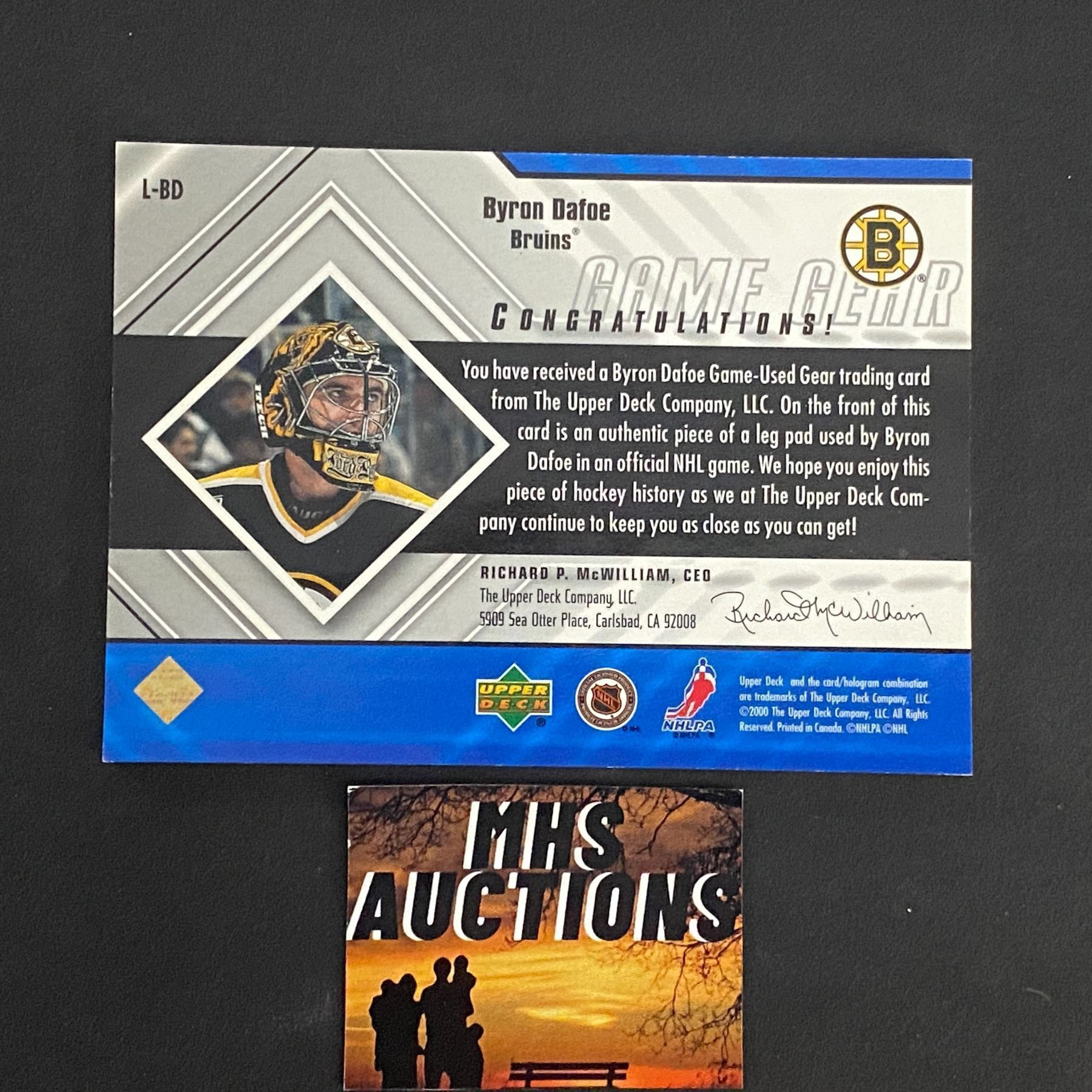 BYRON DAFOE 2000 UPPER DECK GAME-USED LEG PADS CARD
