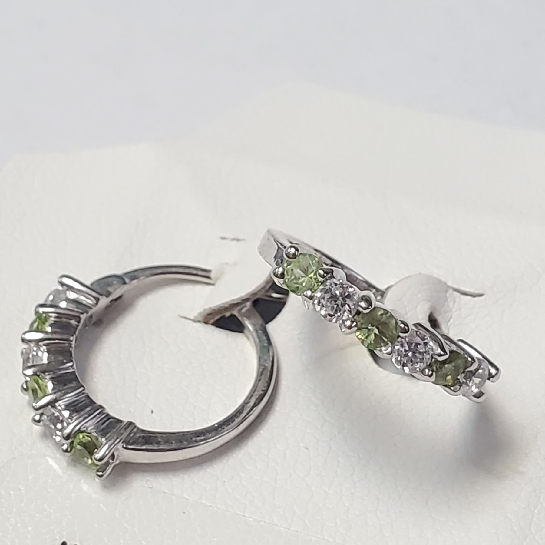 SILVER PERIDOT AND CZ EARRINGS, SUGGESTED RETAIL VALUE $30