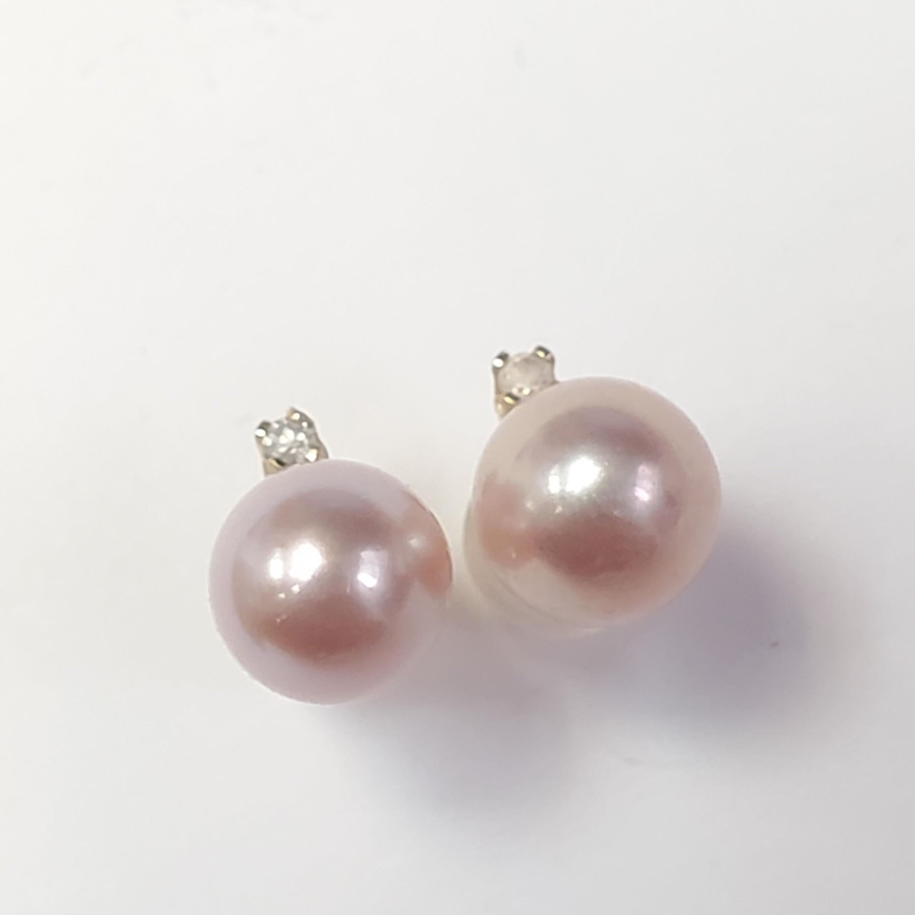 14K YELLOW GOLD FRESH WATER PEARL AND DIAMOND(0.02CT) EARRINGS, SUGGESTED RETAIL VALUE $240