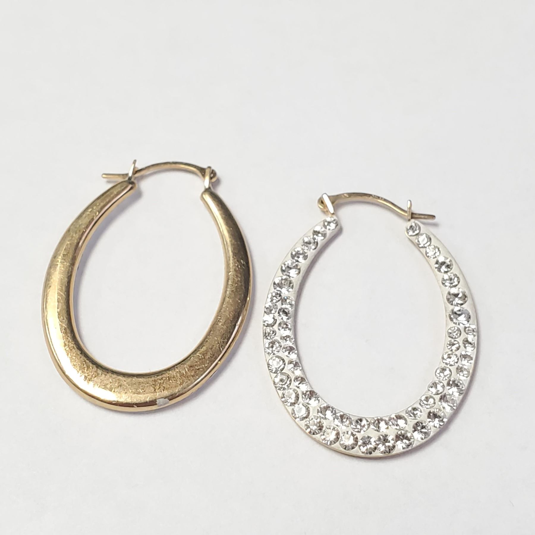 10K YELLOW GOLD 1.28G CRYSTAL HOOP EARRINGS, SUGGESTED RETAIL VALUE $800