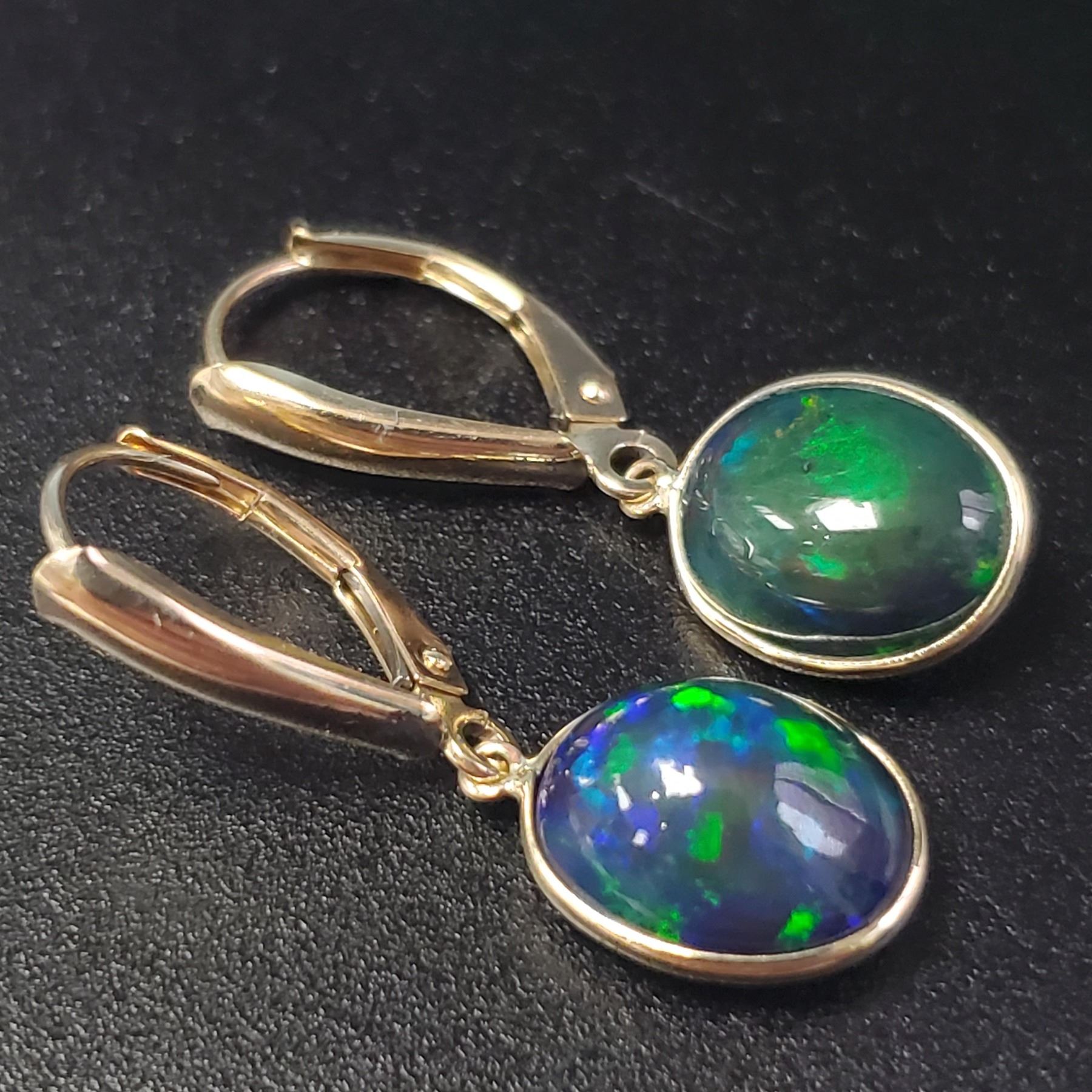 10K YELLOW GOLD BLACK OPAL (SMOKED)(4.8CT) EARRINGS (~WEIGHT 1.7G), APPRAISED RETAIL $1630