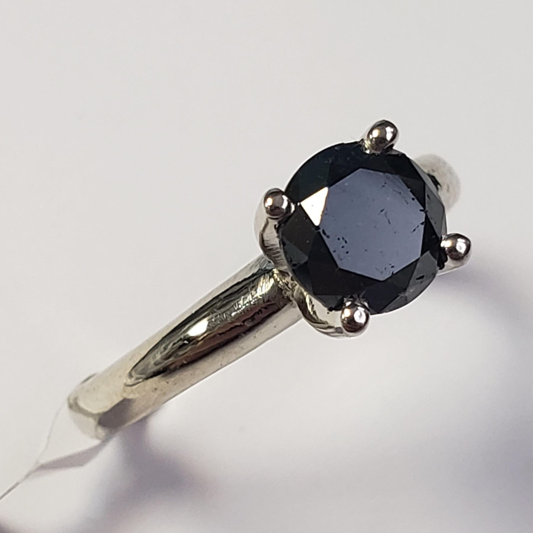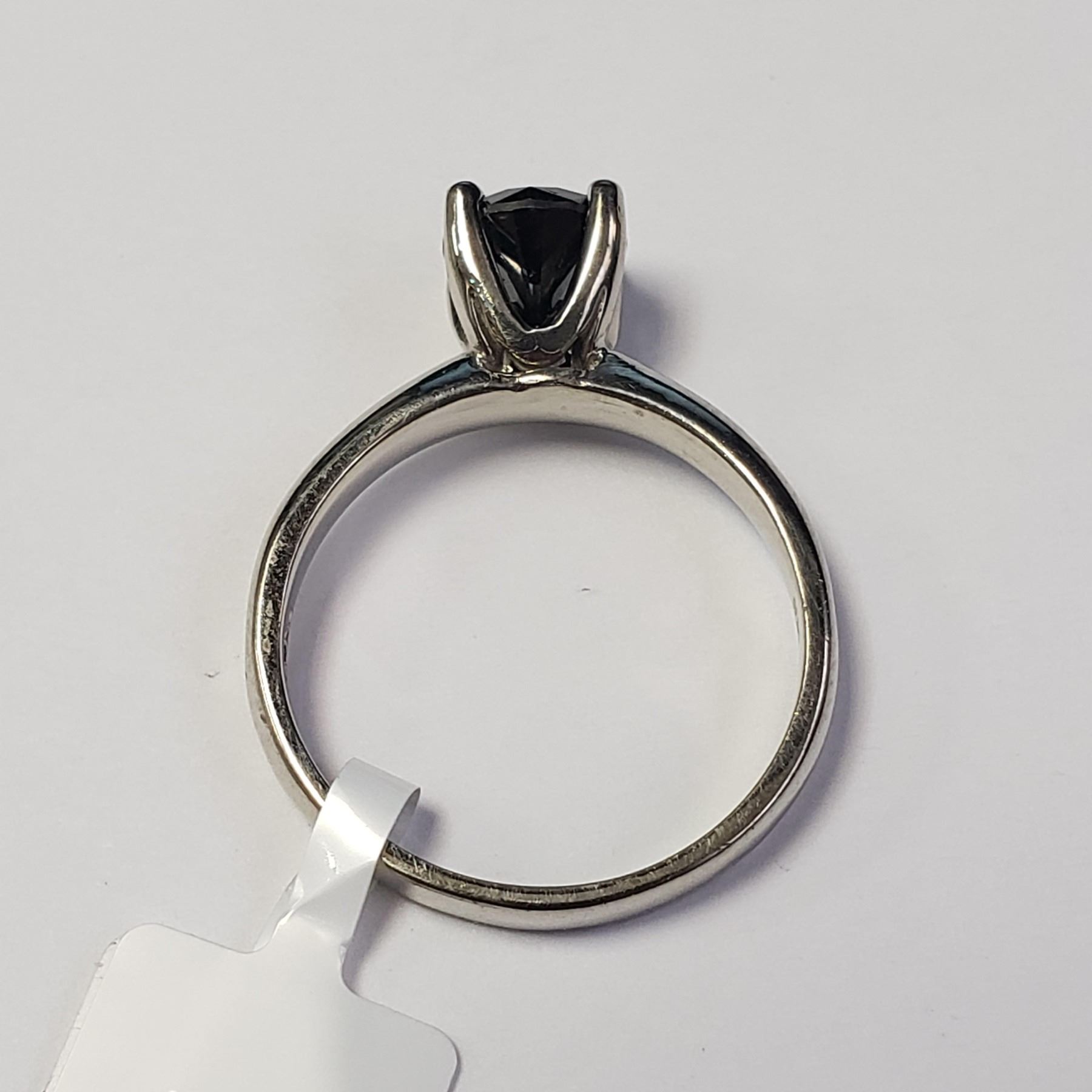 14K WHITE GOLD BLACK DIAMOND(1.25CT) RING SIZE 6 (RING IS RESIZABLE FOR $40) (~WEIGHT 2.93G), MADE IN CANADA, APPRAISED RETAIL $2745 COMES WITH CERTIFICATE OF AUTHENTICITY