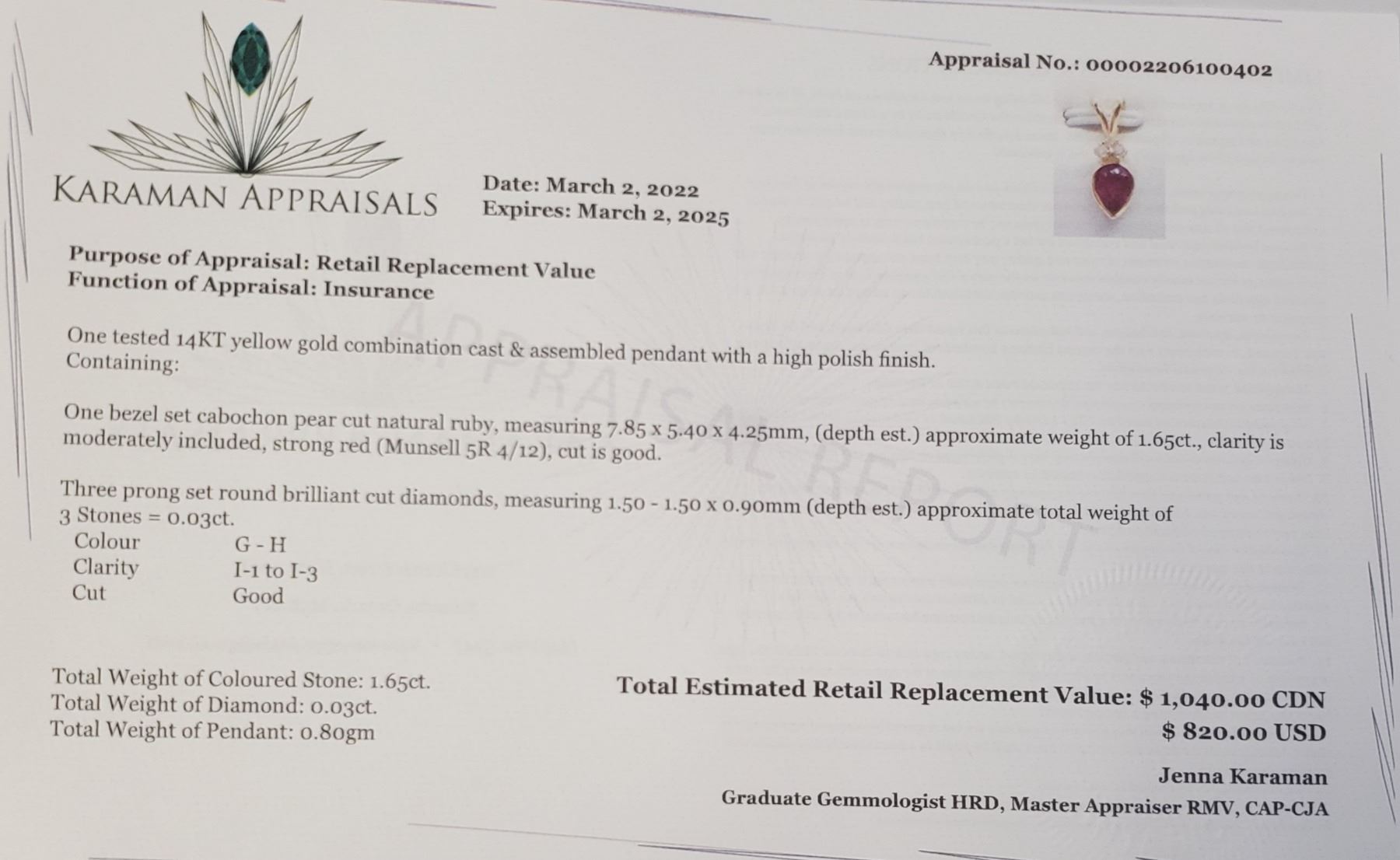 14K YELLOW GOLD RUBY(1.65CT) DIAMOND(0.03CT) PENDANT WEIGHT 0.8G, MADE IN CANADA, APPRAISED RETAIL $1040**ALL ITEMS MUST BE REMOVED BY 5PM MONDAY, SEPTEMBER 17, 2022. ALL REMAINING ITEMS WILL BE SUBJECT TO A $6.00 PER DAY STORAGE CHARGE. ANY ITEMS REMAINING AFTER MONDAY, SEPTEMBER 17, 2022 WILL BE CONSIDERED FORFEITED. NO REFUNDS WILL BE ISSUED FOR FORFEITED ITEMS. TO SCHEDULE A PICK UP APPOINTMENT CLICK HERE