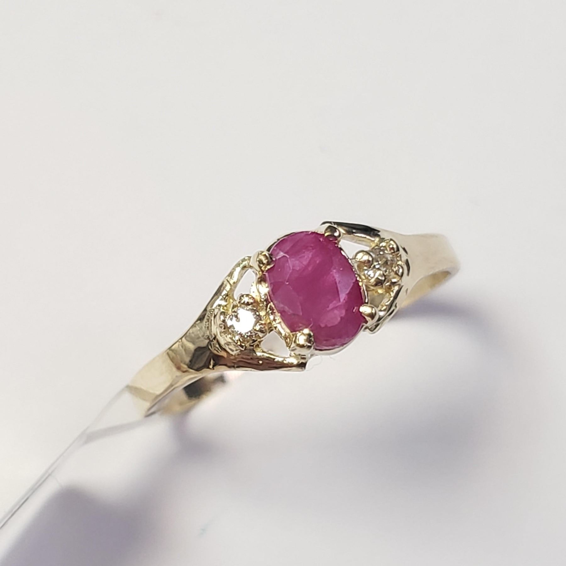 10K YELLOW GOLD RUBY(0.56CT) DIAMOND(0.03CT) RING SIZE 6.5 (RING IS RESIZABLE FOR $40) (~WEIGHT 1.24G), MADE IN CANADA, APPRAISED RETAIL $1000