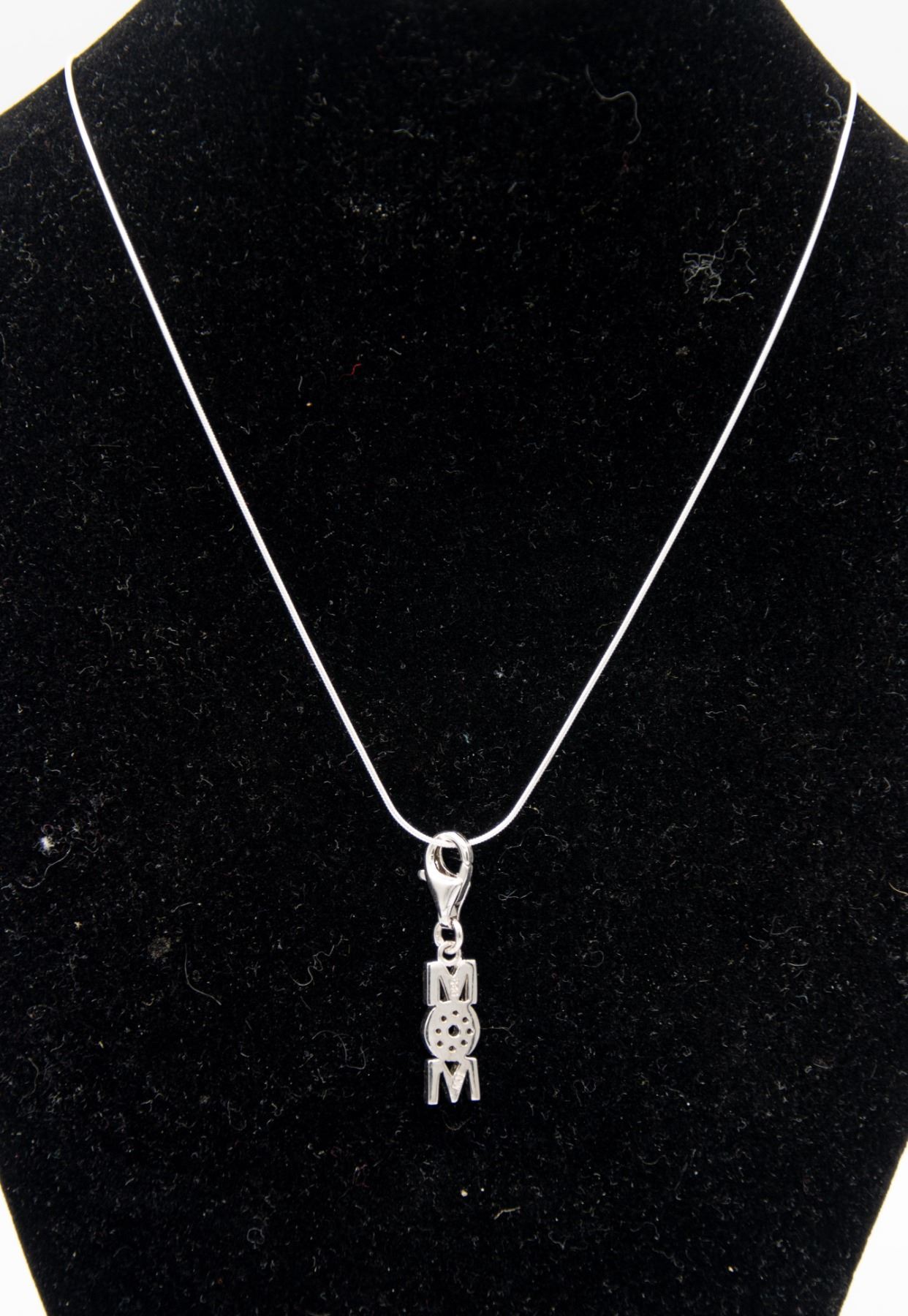 SILVER CZ "MOM" 18" NECKLACE**ALL ITEMS MUST BE REMOVED BY 5PM MONDAY, SEPTEMBER 17, 2022. ALL REMAINING ITEMS WILL BE SUBJECT TO A $6.00 PER DAY STORAGE CHARGE. ANY ITEMS REMAINING AFTER MONDAY, SEPTEMBER 17, 2022 WILL BE CONSIDERED FORFEITED. NO REFUNDS WILL BE ISSUED FOR FORFEITED ITEMS. TO SCHEDULE A PICK UP APPOINTMENT CLICK HERE