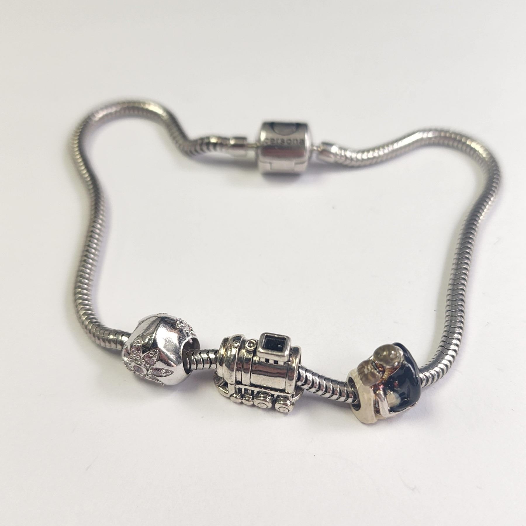 SILVER PANDORA STYLE BRACELET LENGTH 8.5" (~WEIGHT 20.3G) **ALL ITEMS MUST BE REMOVED BY 5PM MONDAY, SEPTEMBER 10, 2022. ALL REMAINING ITEMS WILL BE SUBJECT TO A $6.00 PER DAY STORAGE CHARGE. ANY ITEMS REMAINING AFTER MONDAY, SEPTEMBER 10, 2022 WILL BE CONSIDERED FORFEITED. NO REFUNDS WILL BE ISSUED FOR FORFEITED ITEMS.TO SCHEDULE A PICK UP APPOINTMENT CLICK HERE