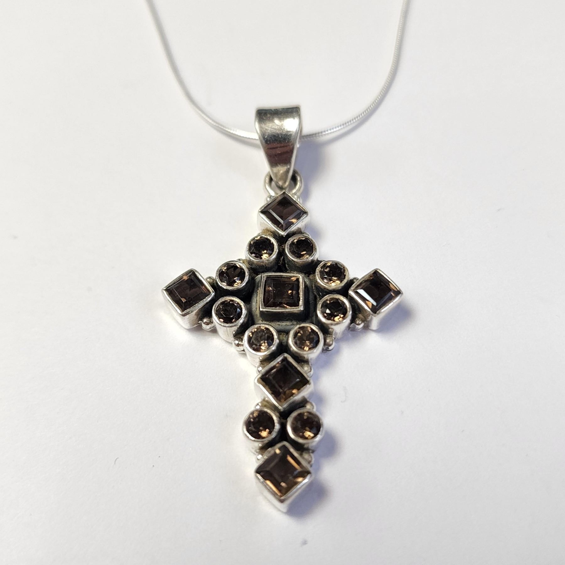 BZ1105-29 SILVER SMOKEY QUARTZ 16" NECKLACE