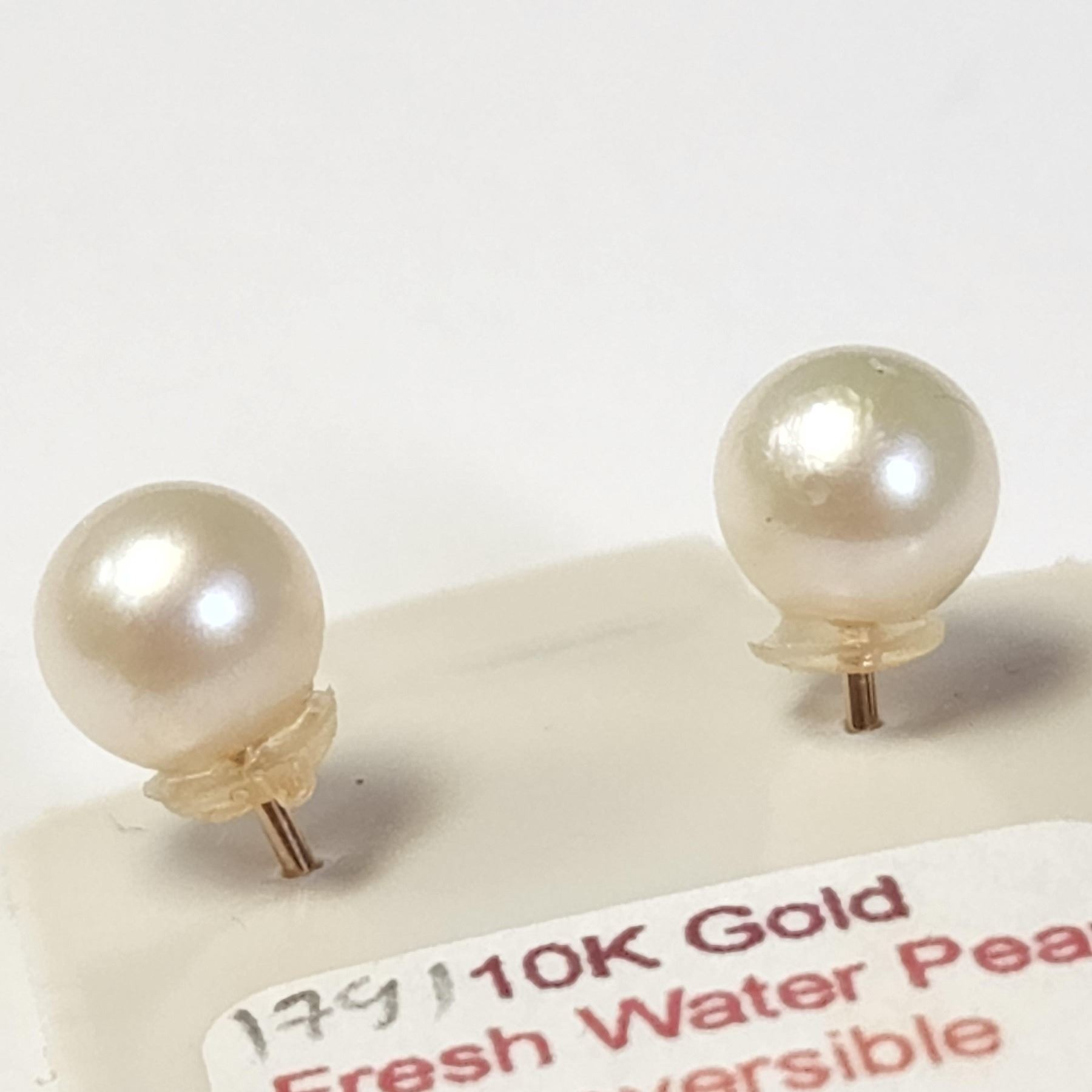 10K YELLOW GOLD FRESH WATER PEARL REVERSIBLE EARRINGS, MADE IN CANADA