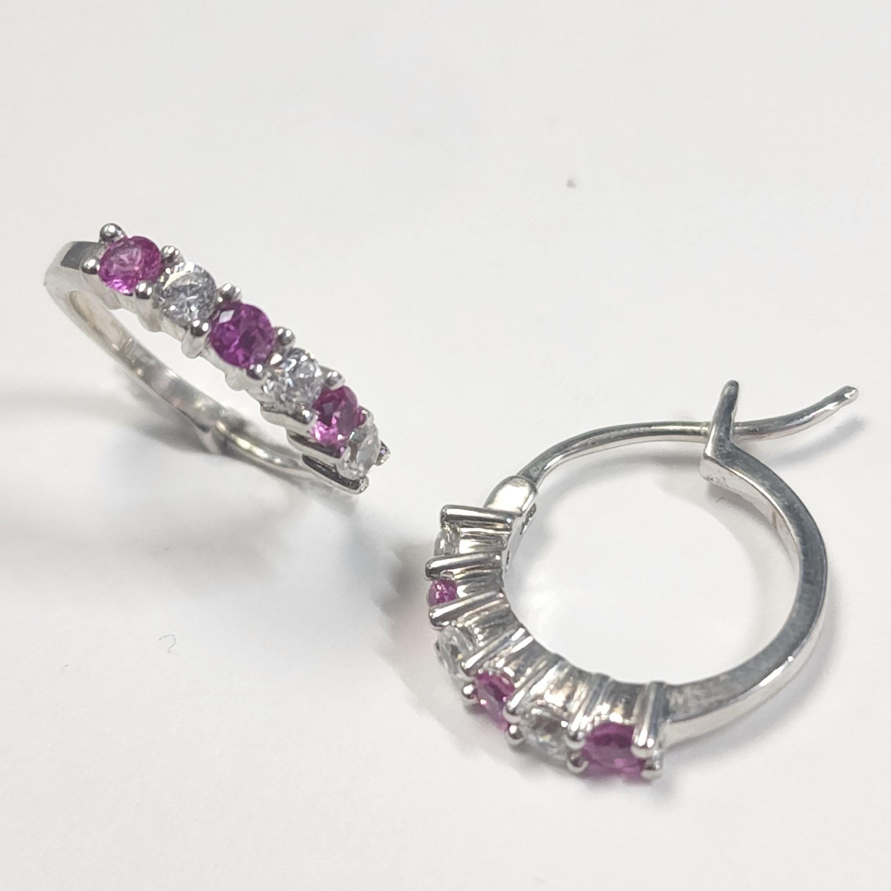 SILVER CREATED PINK SAPPHIRE EARRINGS