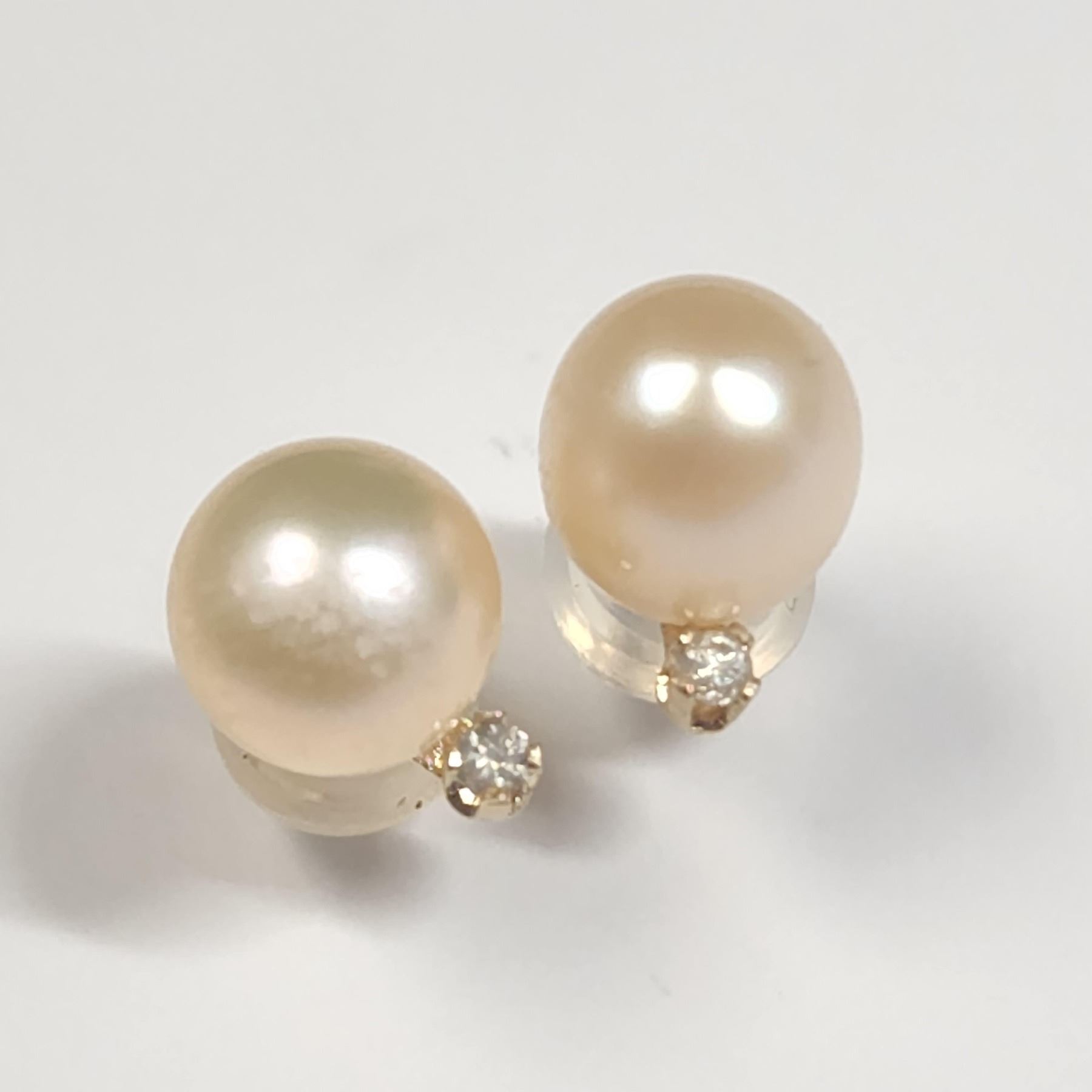 14K YELLOW GOLD FRESH WATER PEARL AND DIAMOND(0.02CT) EARRINGS, SUGGESTED RETAIL VALUE $240