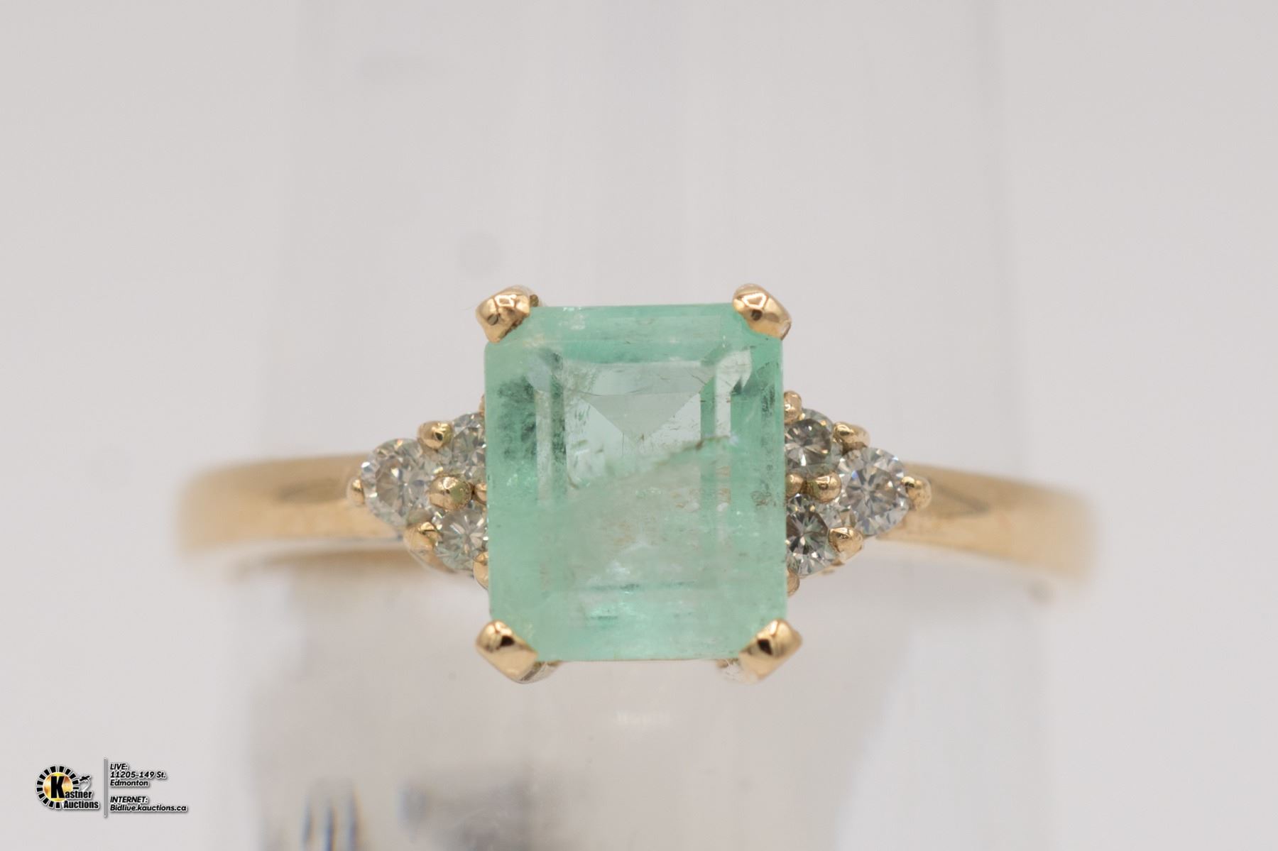 10K YELLOW GOLD COLOMBIA EMERALD (1.4CT) DIAMOND(0.16CT) RING SIZE 6.5 (RING IS RESIZABLE FOR $40) WEIGHT 2.64G, MADE IN CANADA, APPRAISED RETAIL $3025**ALL ITEMS MUST BE REMOVED BY 5PM FRIDAY, SEPTEMBER 16ND, 2022. ALL REMAINING ITEMS WILL BE SUBJECT TO A $6.00 PER DAY STORAGE CHARGE. ANY ITEMS REMAINING AFTER FRIDAY, SEPTEMBER 16, 2022 WILL BE CONSIDERED FORFEITED. NO REFUNDS WILL BE ISSUED FOR FORFEITED ITEMS.** TO SCHEDULE A PICK UP APPOINTMENT. CLICK HERE