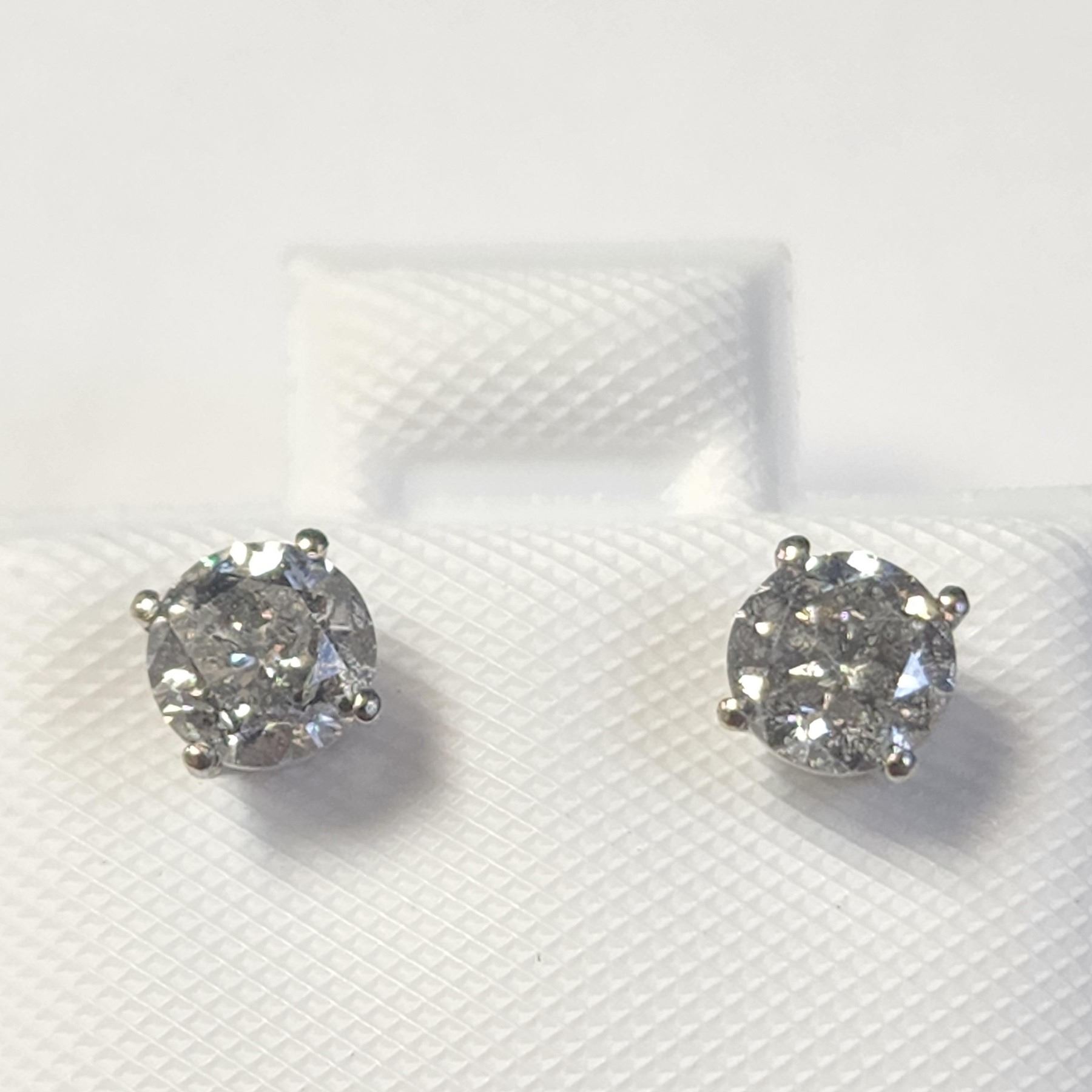 14K WHITE GOLD DIAMOND (0.75CT,I2-3,F-G) EARRINGS. MADE IN CANADA. SUGGESTED RETAIL VALUE $2535**ALL ITEMS MUST BE REMOVED BY 5PM MONDAY, OCTOBER 10TH, 2022. ALL REMAINING ITEMS WILL BE SUBJECT TO A $6.00 PER DAY STORAGE CHARGE. ANY ITEMS REMAINING AFTER MONDAY, OCTOBER 24TH, 2022 WILL BE CONSIDERED FORFEITED. NO REFUNDS WILL BE ISSUED FOR FORFEITED ITEMS. TO SCHEDULE A PICK UP APPOINTMENT CLICK HERE