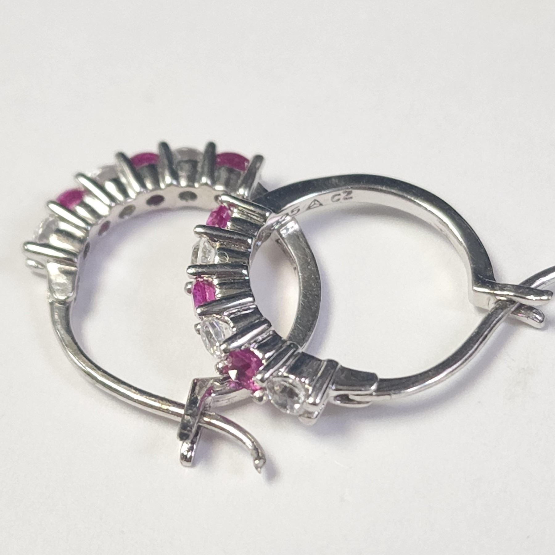 BZ1216-68 SILVER CREATED RUBY HOOP EARRINGS