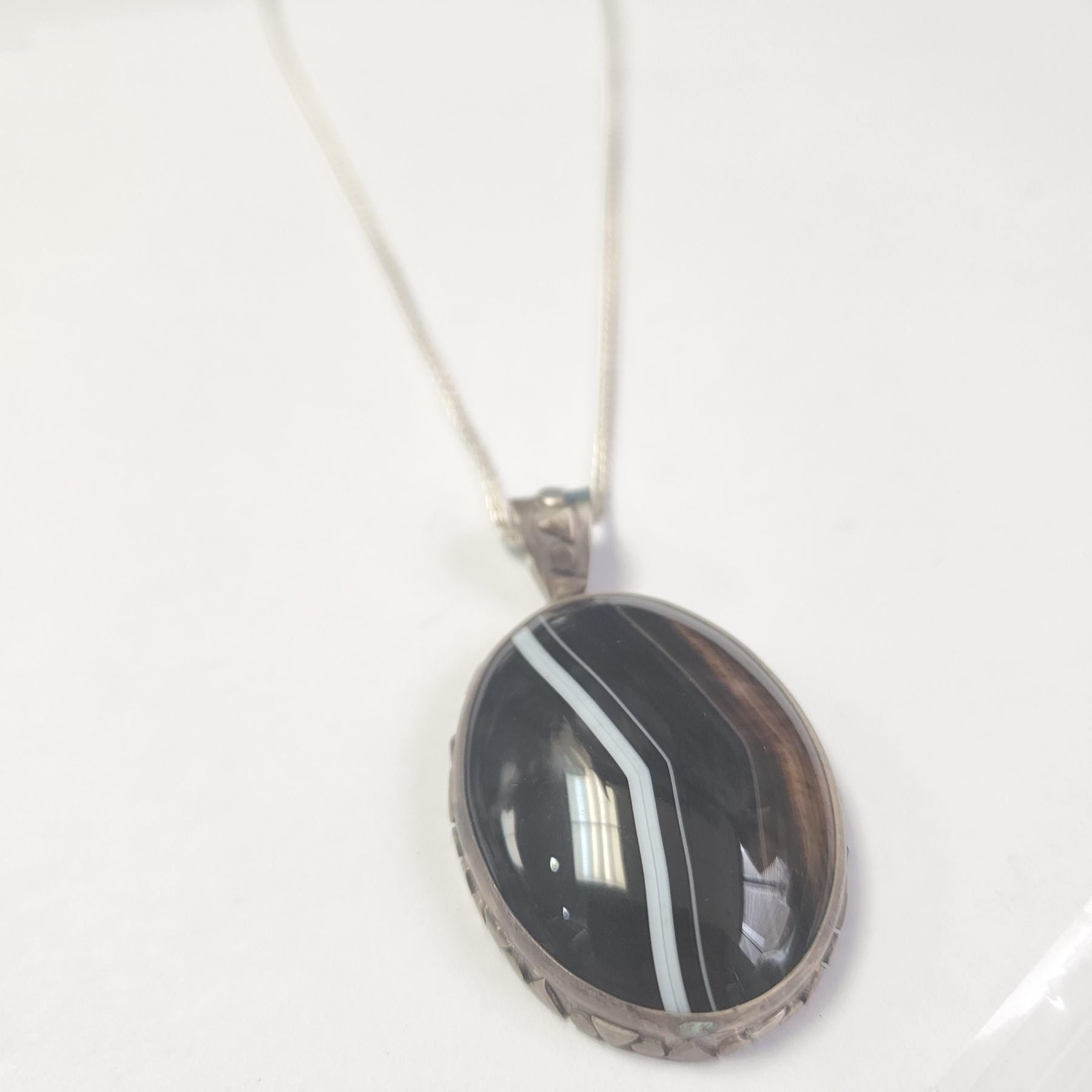 BZ1216-96 SILVER AGATE 18" NECKLACE