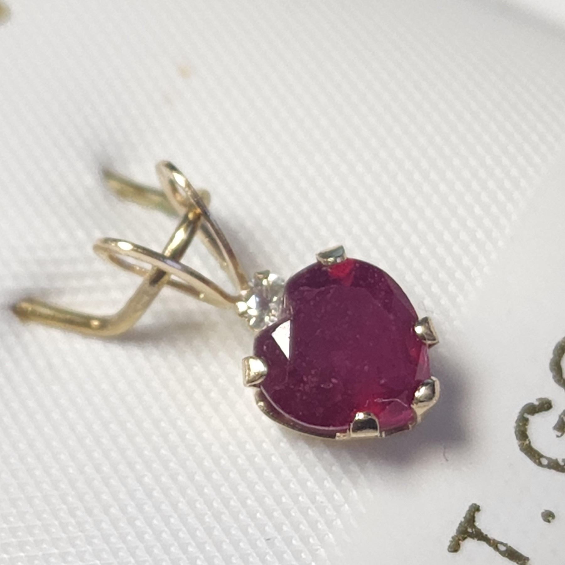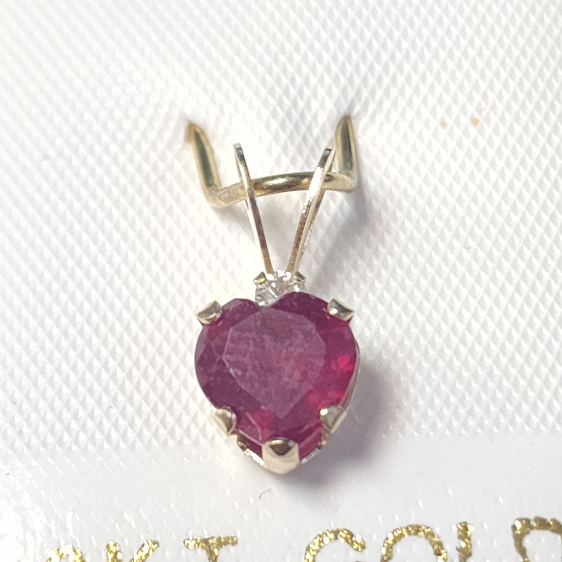 10K YELLOW GOLD RUBY (1CT) DIAMOND (0.03CT) PENDANT. MADE IN CANADA