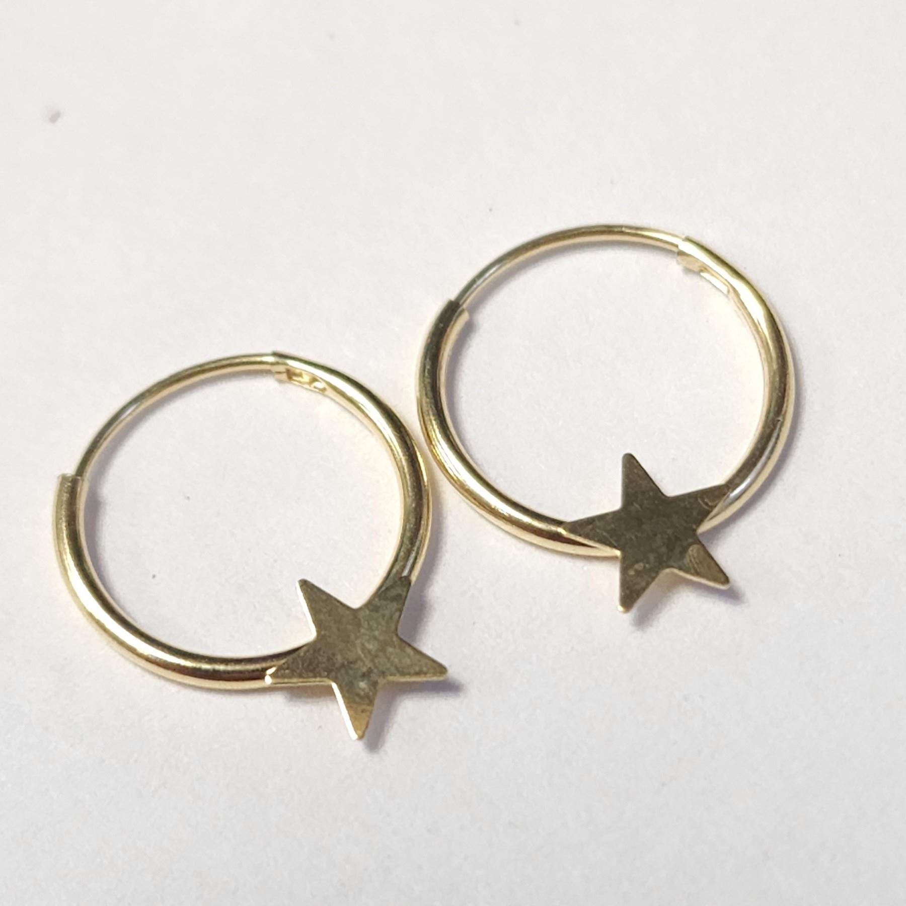 BZ1254-43 14K YELLOW GOLD MINI STAR HOOP EARRINGS