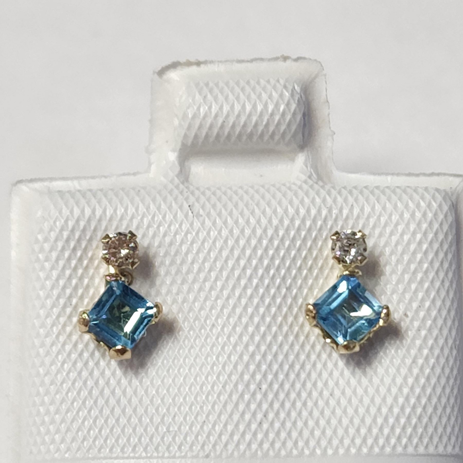 EARRINGS. 10K WHITE GOLD BLUE TOPAZ (0.4CT) DIAMOND (0.44CT) EARRINGS. MADE IN CANADA