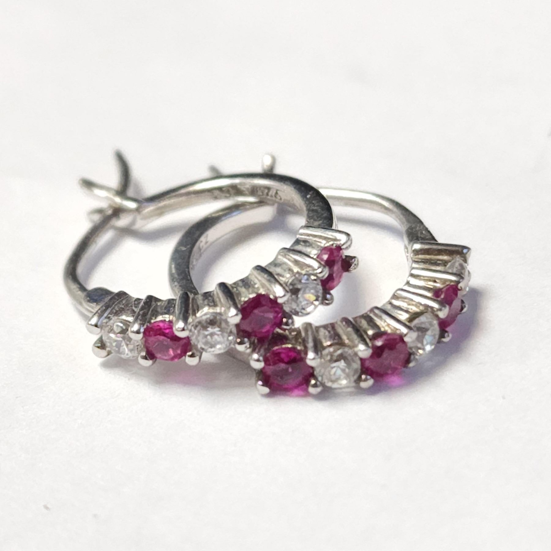 BZ1254-47 SILVER CREATED RUBY EARRINGS