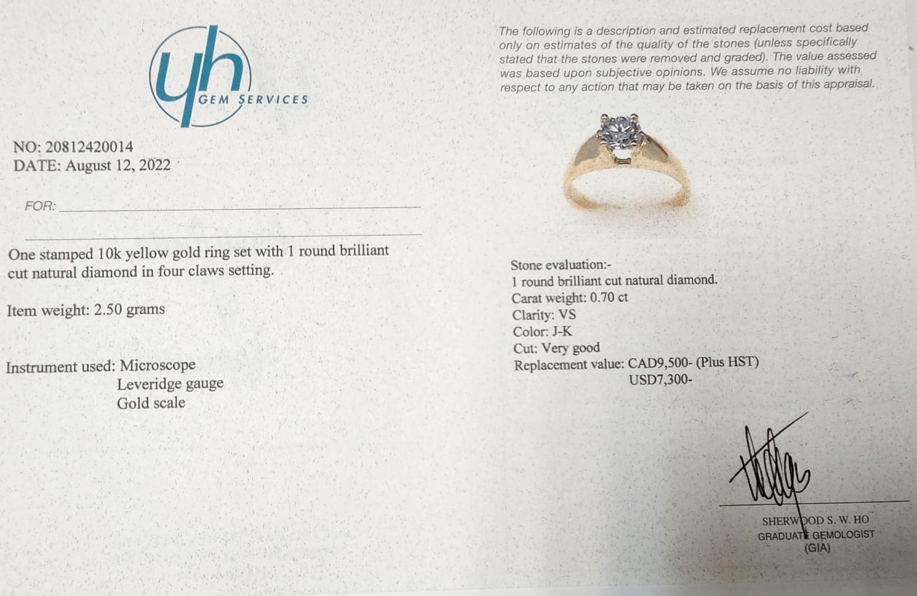 10K YELLOW GOLD, DIAMOND (0.7CT,VS,J-K) RING SIZE 6.5 WEIGHT 2.5G, SUGGESTED RETAIL VALUE $9500 **ALL ITEMS MUST BE REMOVED BY 5PM MONDAY, NOVEMBER 14TH, 2022. ALL REMAINING ITEMS WILL BE SUBJECT TO A $6.00 PER DAY STORAGE CHARGE. ANY ITEMS REMAINING AFTER MONDAY, DECEMBER 5, 2022 WILL BE CONSIDERED FORFEITED. NO REFUNDS WILL BE ISSUED FOR FORFEITED ITEMS. TO SCHEDULE A PICK UP APPOINTMENT CLICK HERE