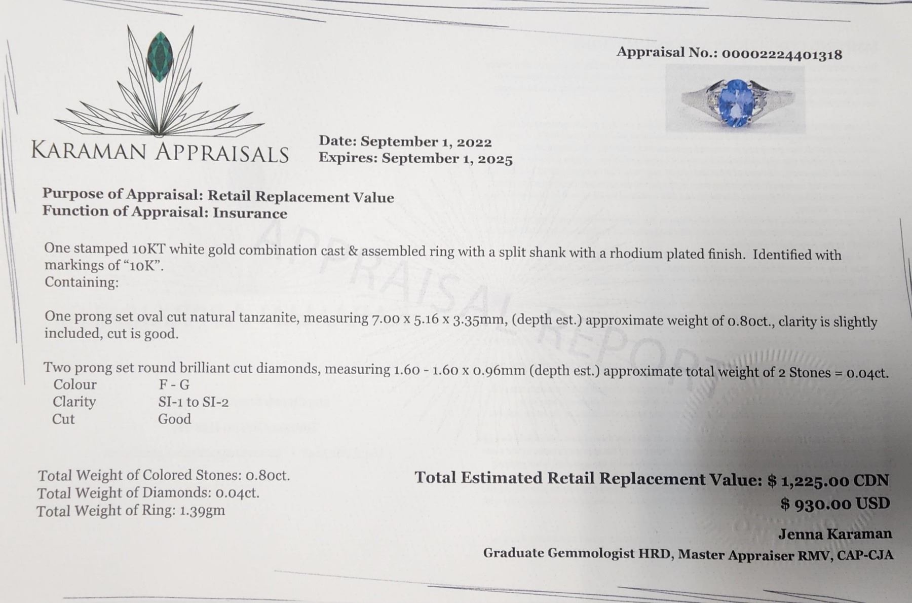 10K WHITE GOLD,ANZANITE(0.8CT) DIAMOND(0.04CT) RING SIZE 7, WEIGHT 1.39G, MADE IN CANADA, APPRAISED RETAIL $1225 **ALL ITEMS MUST BE REMOVED BY 5PM SATURDAY, MAY 13TH 2023. ALL REMAINING ITEMS WILL BE SUBJECT TO A $6.00 PER DAY STORAGE CHARGE. ANY ITEMS REMAINING AFTER MONDAY, MAY 29TH, 2023 WILL BE CONSIDERED FORFEITED. NO REFUNDS WILL BE ISSUED FOR FORFEITED ITEMS. TO SCHEDULE A PICK UP APPOINTMENT CLICK HERE