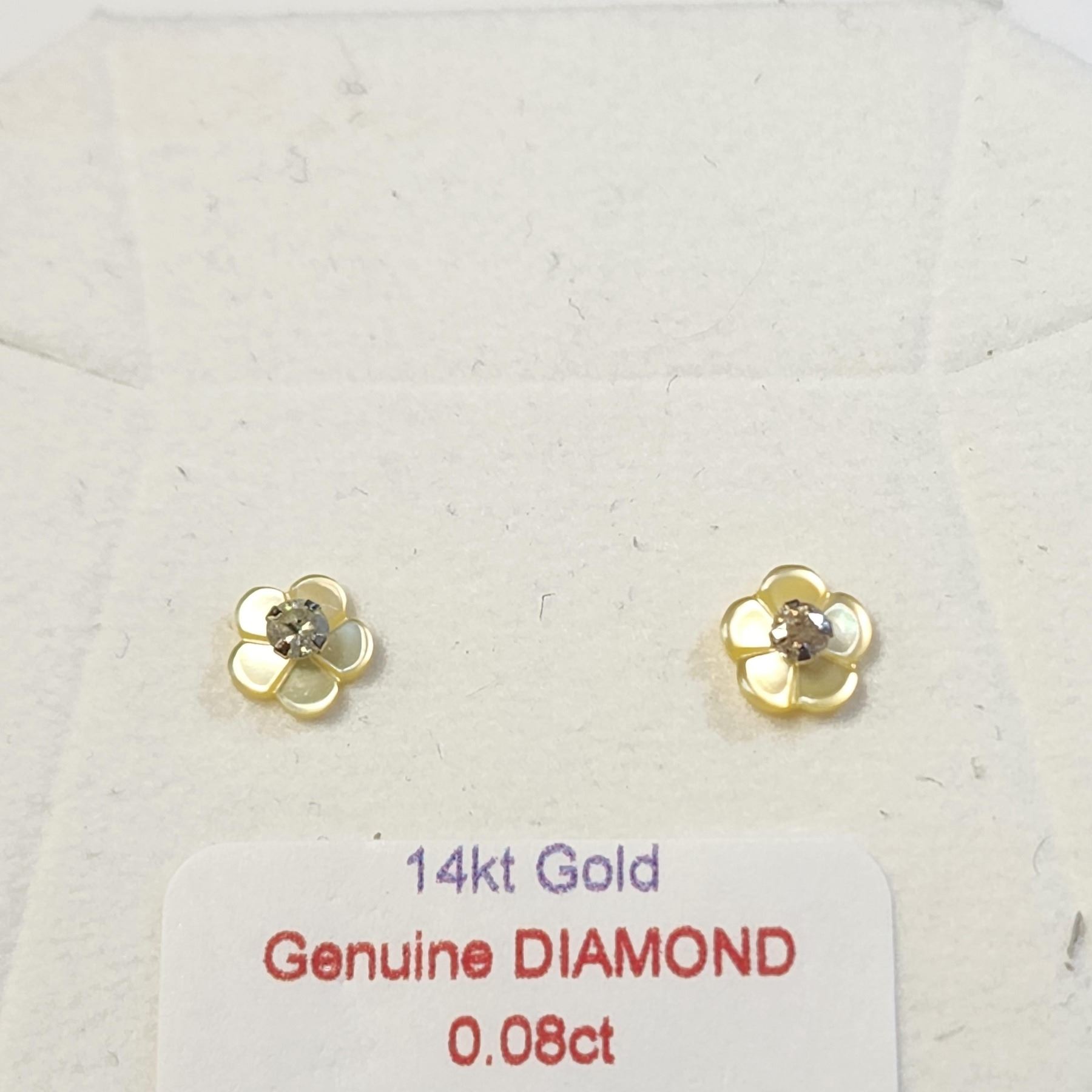 14K YELLOW GOLD, GENUINE DIAMOND 2IN1 WITH MOTHER OF PEARL(0.08CT) EARRINGS, MADE IN CANADA
