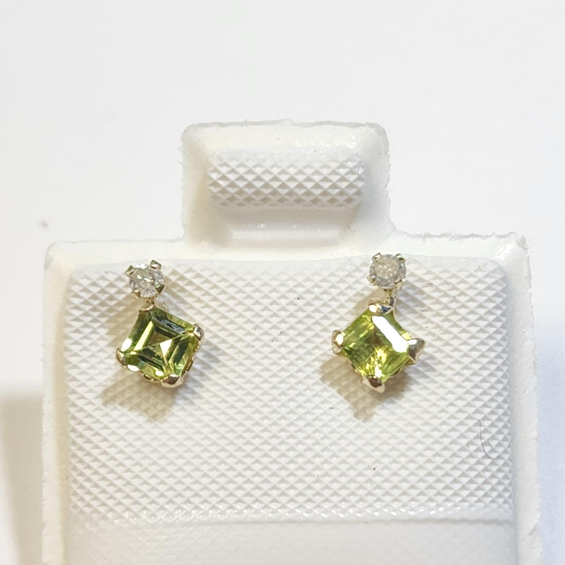 10K YELLOW GOLD, PERIDOT(0.4CT) DIAMOND(0.06CT) EARRINGS, MADE IN CANADA