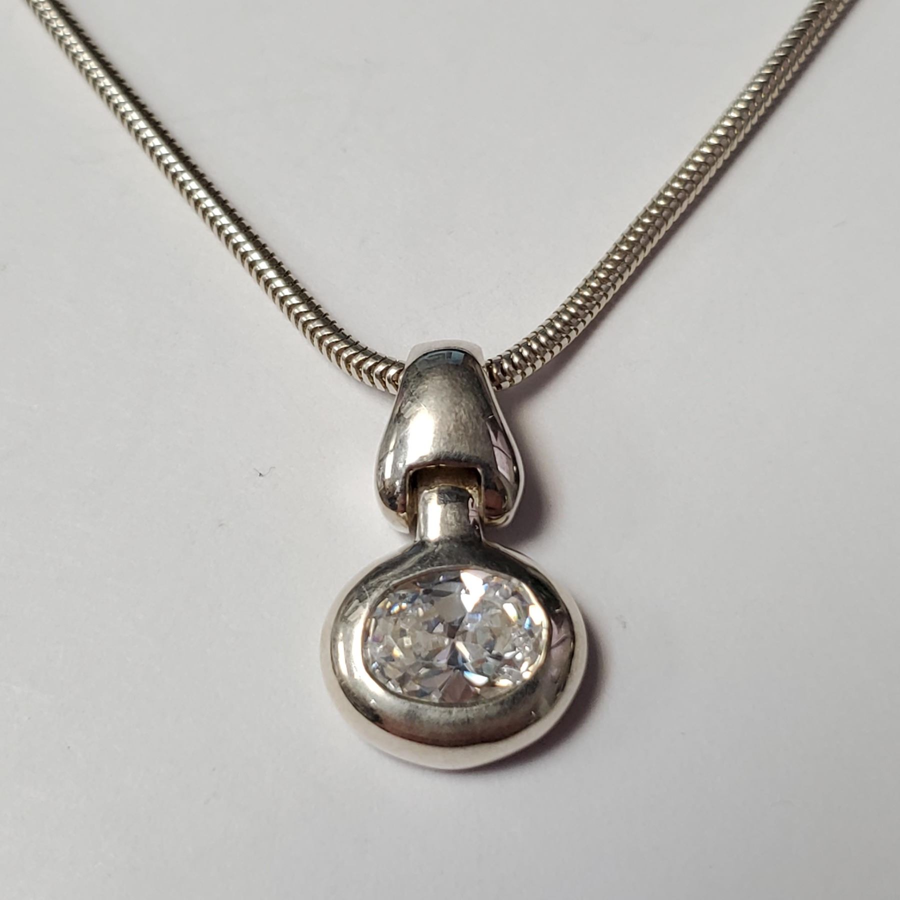 BZ1497-57 SILVER CZ 16  NECKLACE
