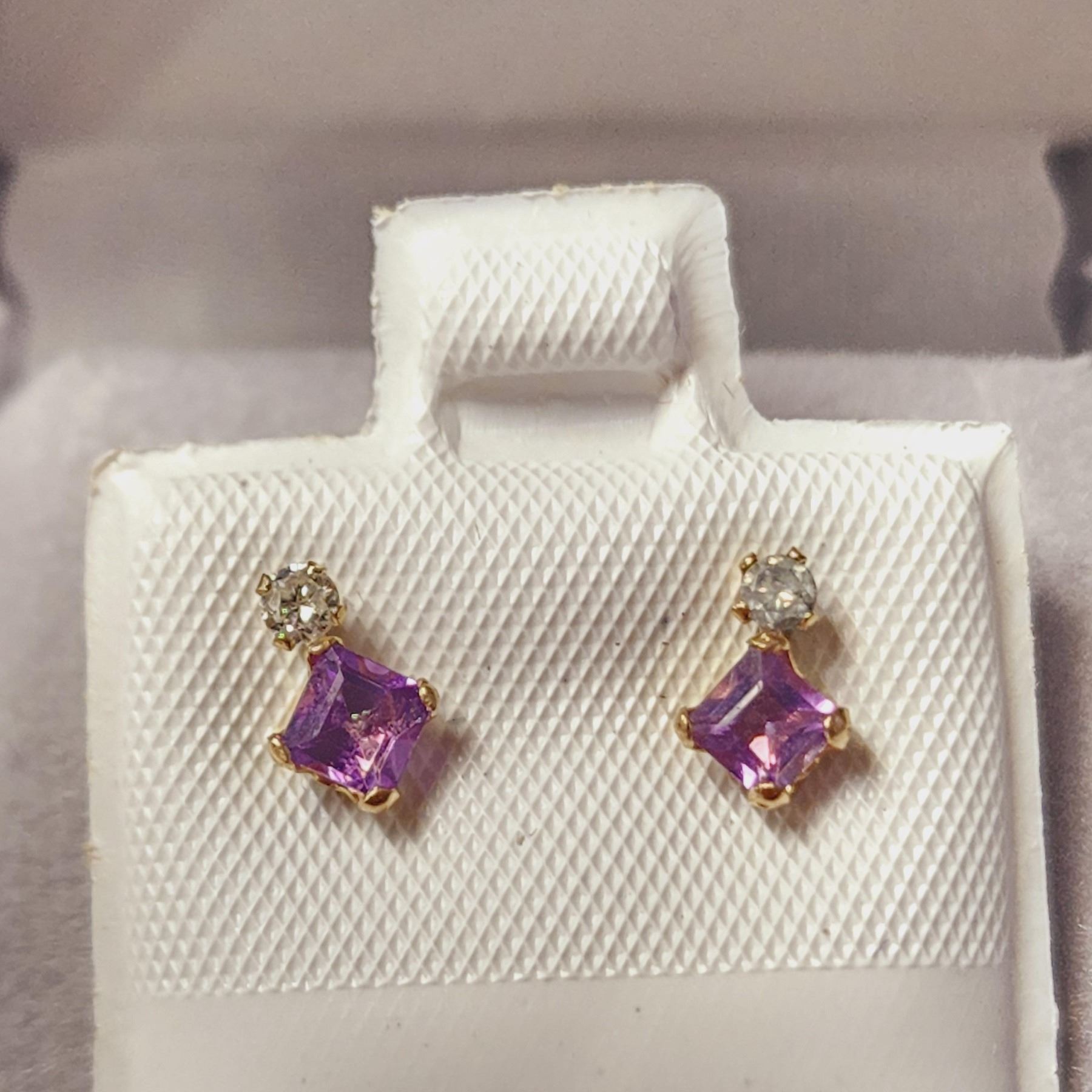 10K YELLOW GOLD, AMETHYST(0.4CT) DIAMOND(0.06CT) EARRINGS, MADE IN CANADA **ALL ITEMS MUST BE REMOVED BY 5PM SATURDAY, MAY 20TH 2023. ALL REMAINING ITEMS WILL BE SUBJECT TO A $6.00 PER DAY STORAGE CHARGE. ANY ITEMS REMAINING AFTER MONDAY, JUNE 5TH, 2023 WILL BE CONSIDERED FORFEITED. NO REFUNDS WILL BE ISSUED FOR FORFEITED ITEMS. TO SCHEDULE A PICK UP APPOINTMENT CLICK HERE