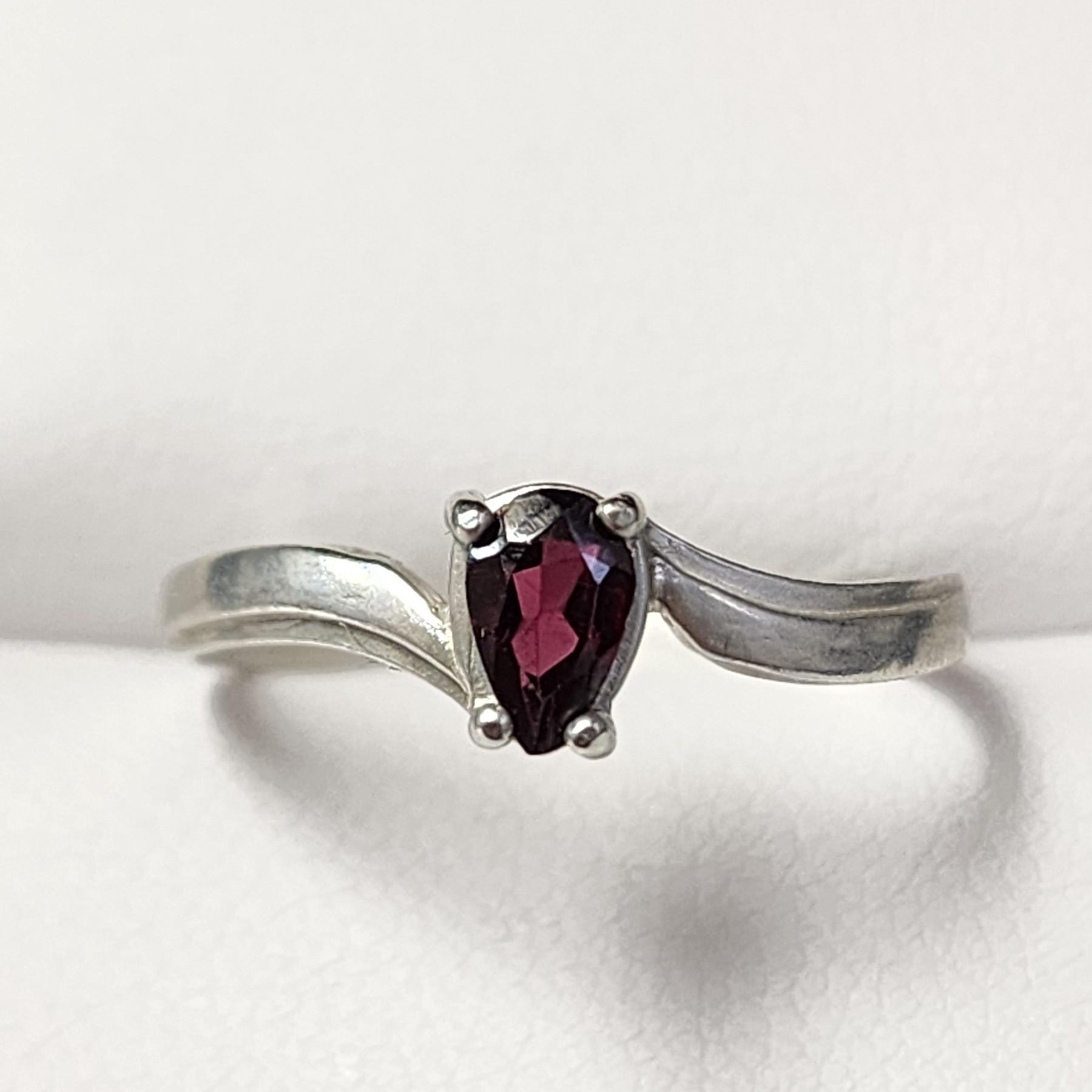 BZ1582-19 SILVER GARNET RING SIZE 5