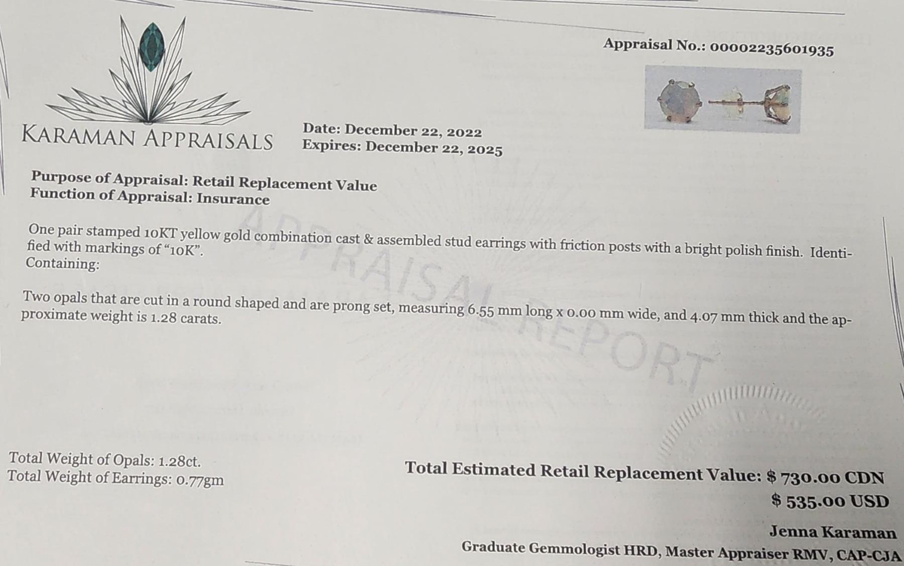 10K YELLOW GOLD NATURAL OPAL(1.28CT) EARRINGS WEIGHT 0.77G, MADE IN CANADA, APPRAISED RETAIL $730 **ALL ITEMS MUST BE REMOVED BY 5PM SATURDAY, JULY 29TH 2023. ALL REMAINING ITEMS WILL BE SUBJECT TO A $6.00 PER DAY STORAGE CHARGE. ANY ITEMS REMAINING AFTER MONDAY, AUGUST 14TH, 2023 WILL BE CONSIDERED FORFEITED. NO REFUNDS WILL BE ISSUED FOR FORFEITED ITEMS. TO SCHEDULE A PICK UP APPOINTMENT CLICK HERE