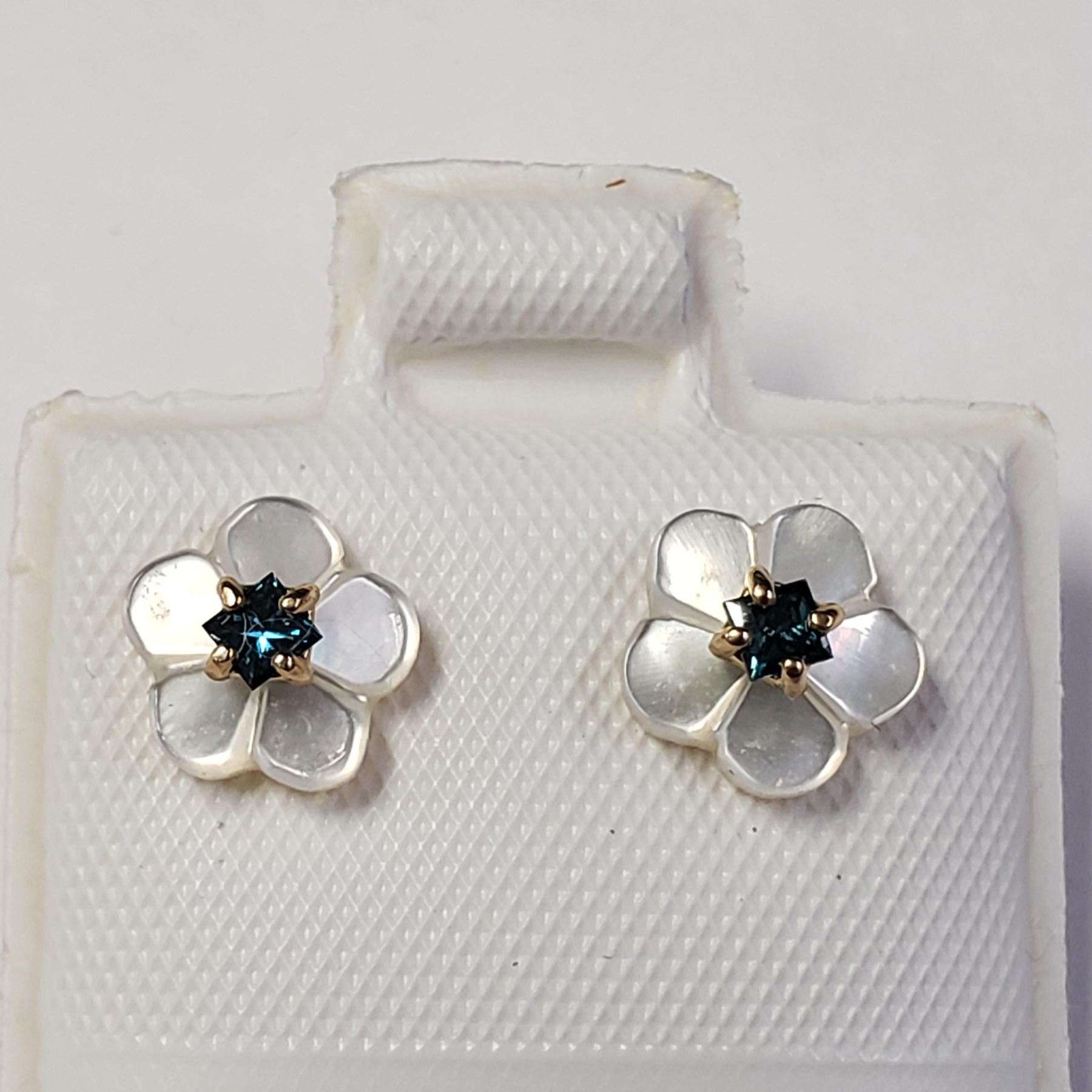 14K YELLOW GOLD NATURAL DIAMOND TREATED COLOR WITH MOTHER OF PEARL 2IN1(0.13CT) EARRINGS