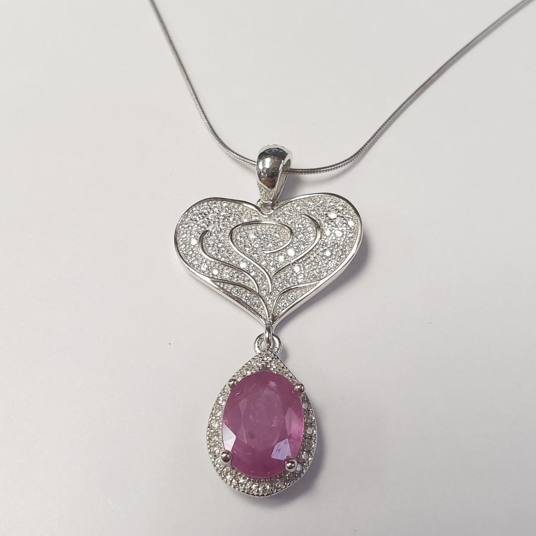 BZ1682-179 SILVER RUBY 16" NECKLACE