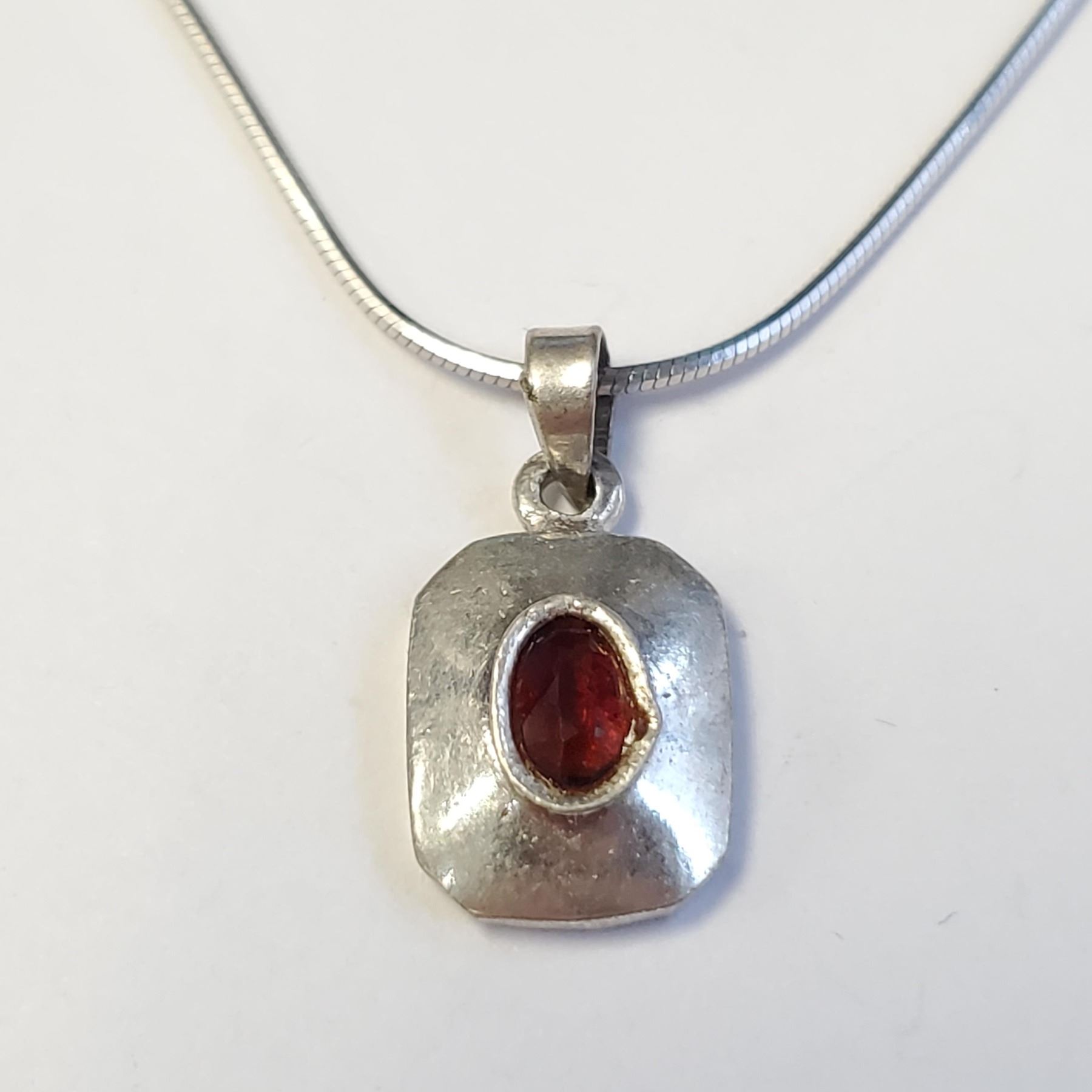 BZ1697-176 SILVER GARNET 16" NECKLACE