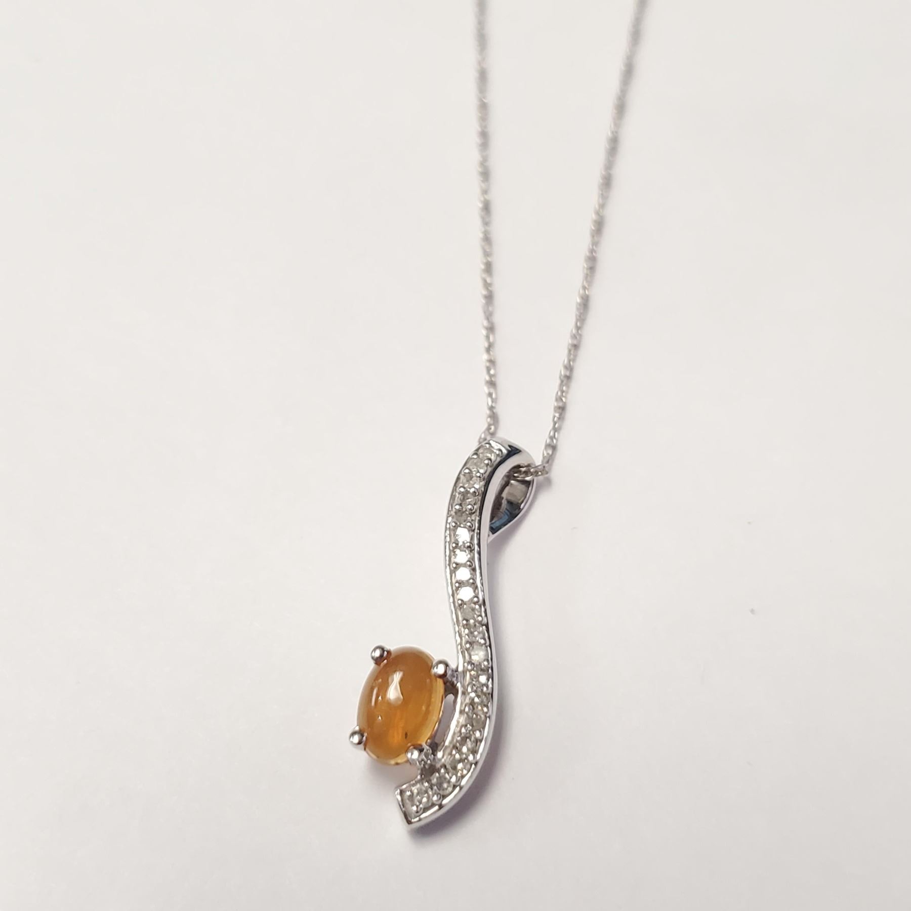 10K WHITE GOLD OPAL(0.5CT) DIAMOND(0.2CT) NECKLACE WEIGHT 1.53G, MADE IN CANADA, APPRAISED RETAIL $1235