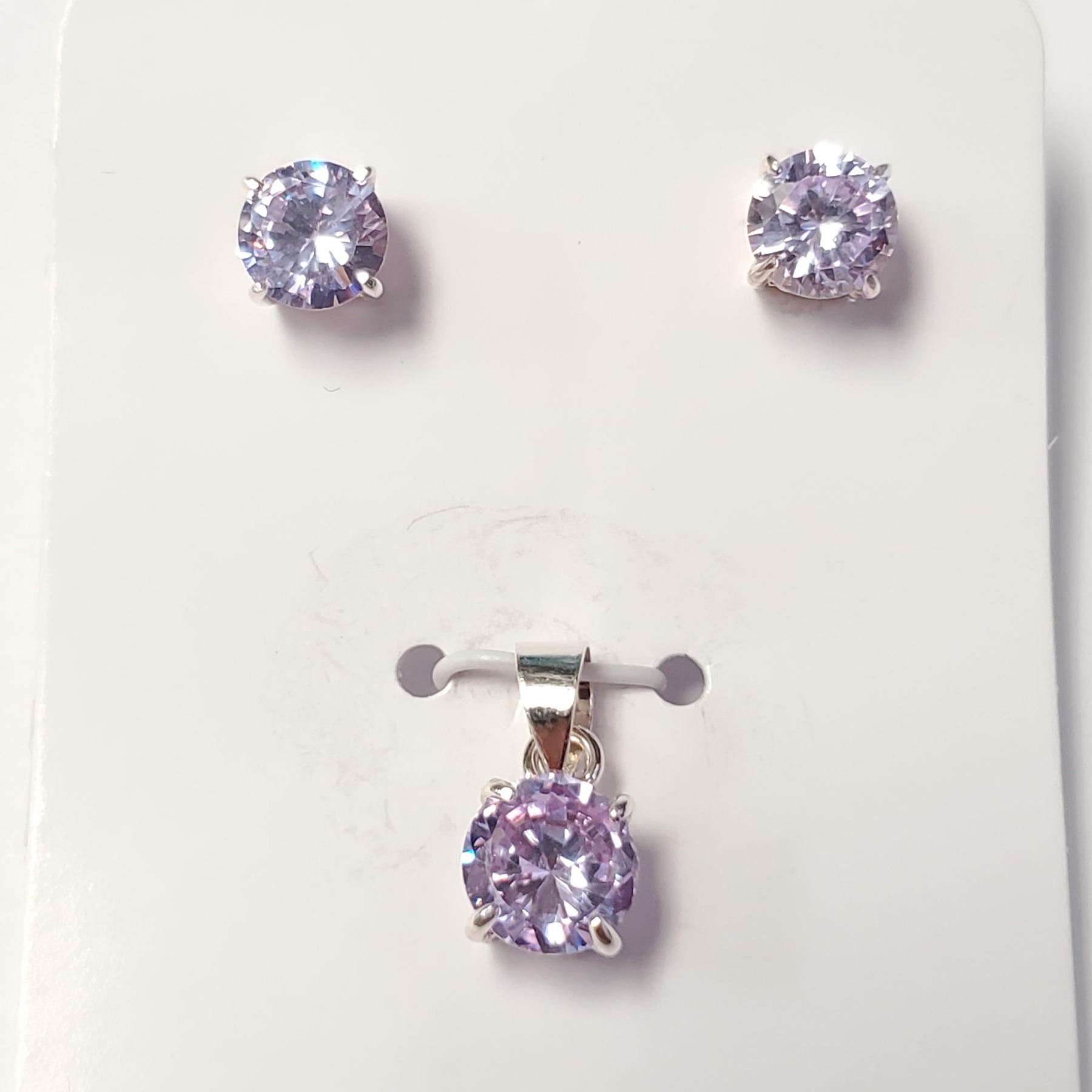 BZ1710-160 SILVER PINK CZ EARRING AND PENDANT SET